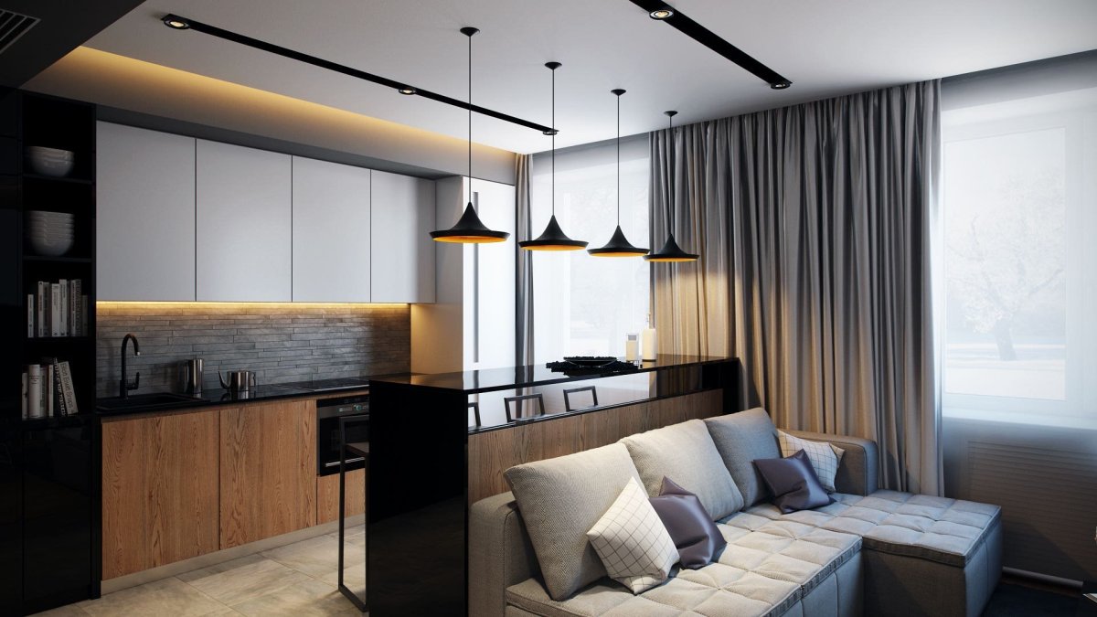 Кухня с гостинной 30кв м интерьер квартира