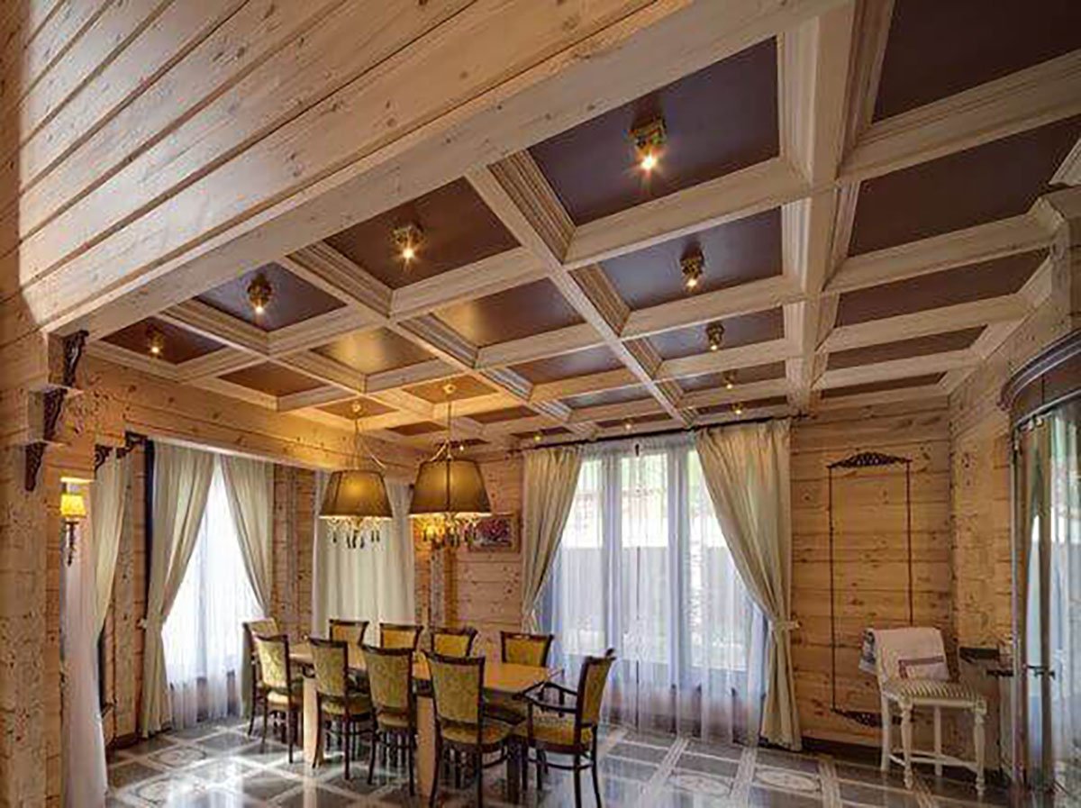 Кессонный потолок в деревянном доме