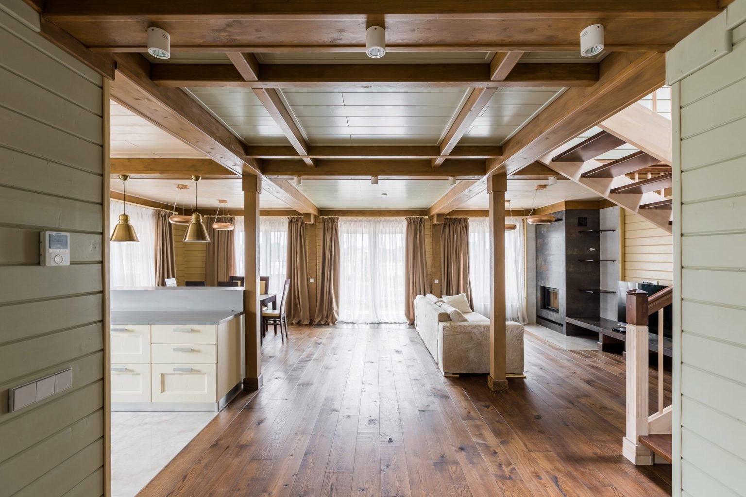 Деревянные потолки в частном доме
