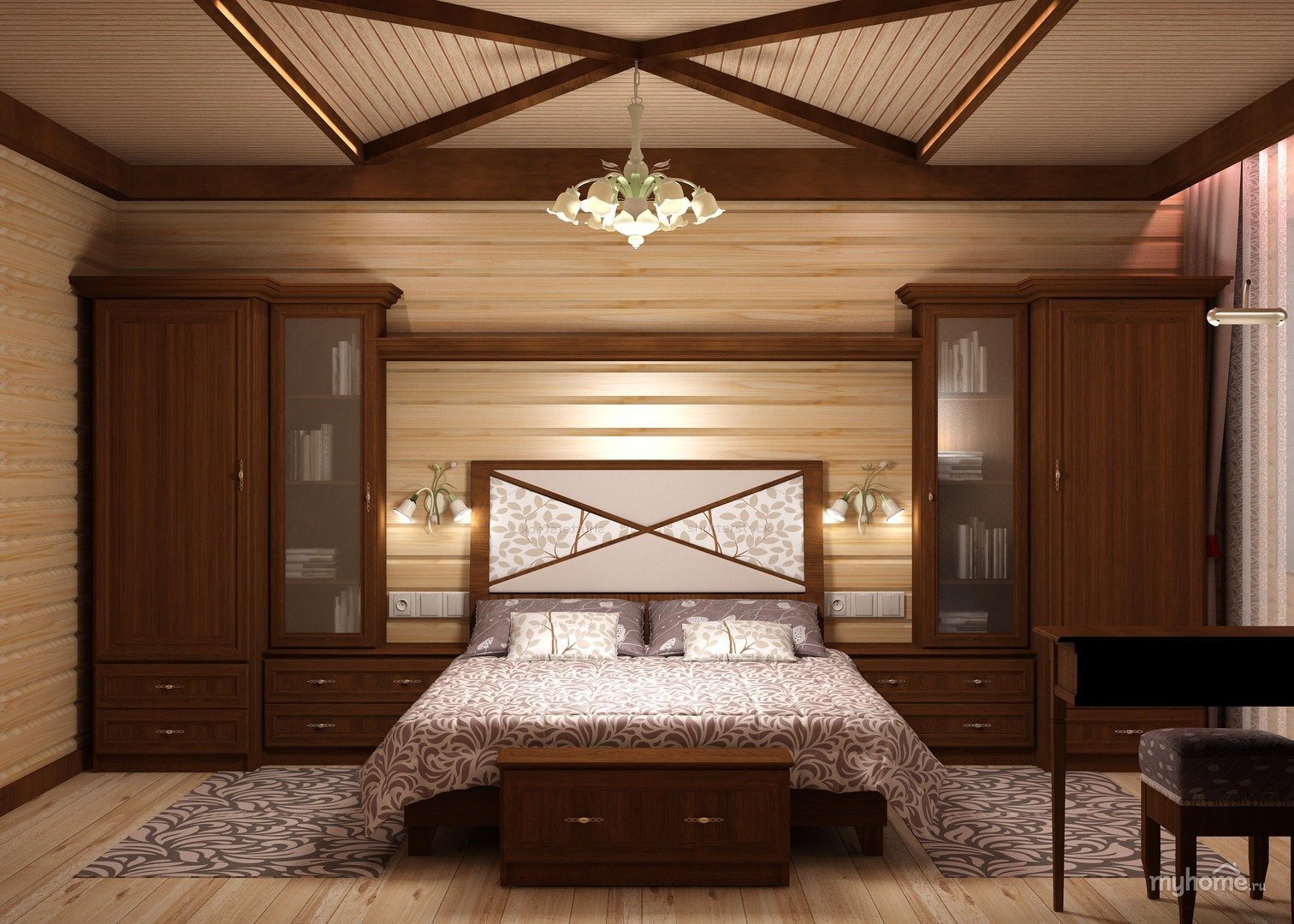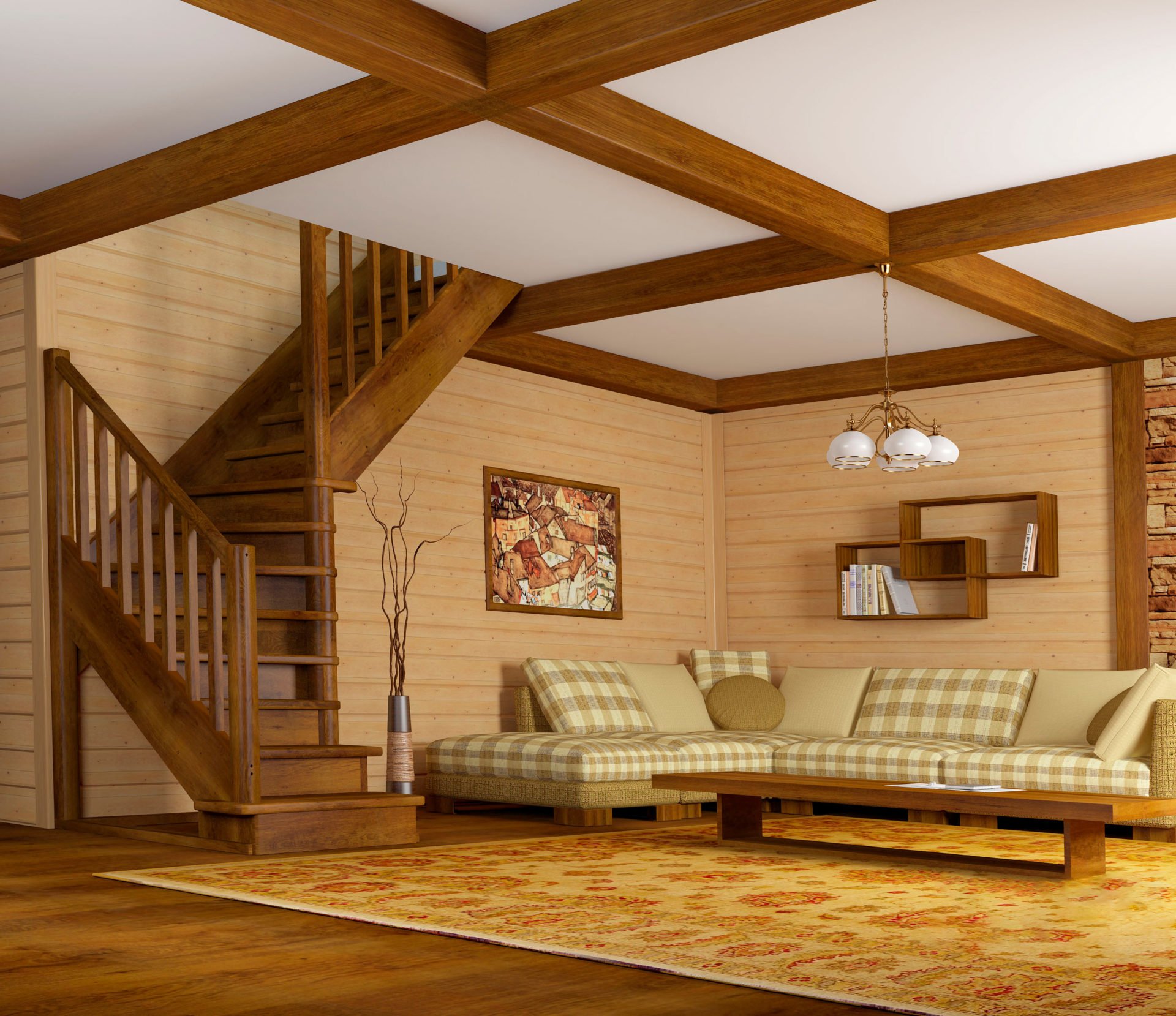 Интерьер люстры в деревянный дом