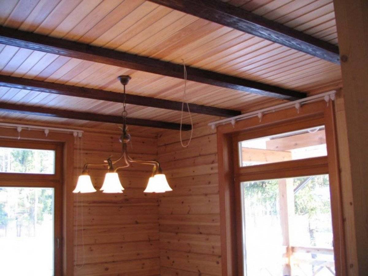 Потолок из вагонки с балками