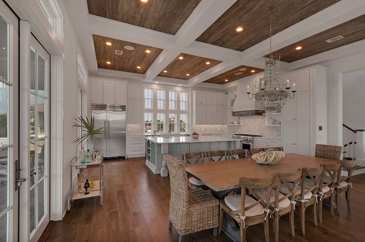 Деревянный потолок на кухне
