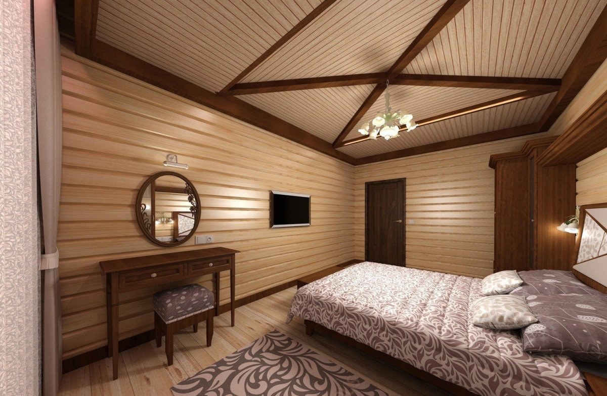 Интерьер комнаты отделанной имитацией бруса
