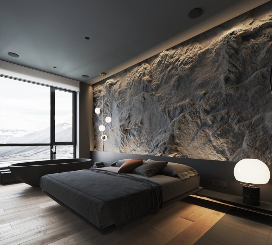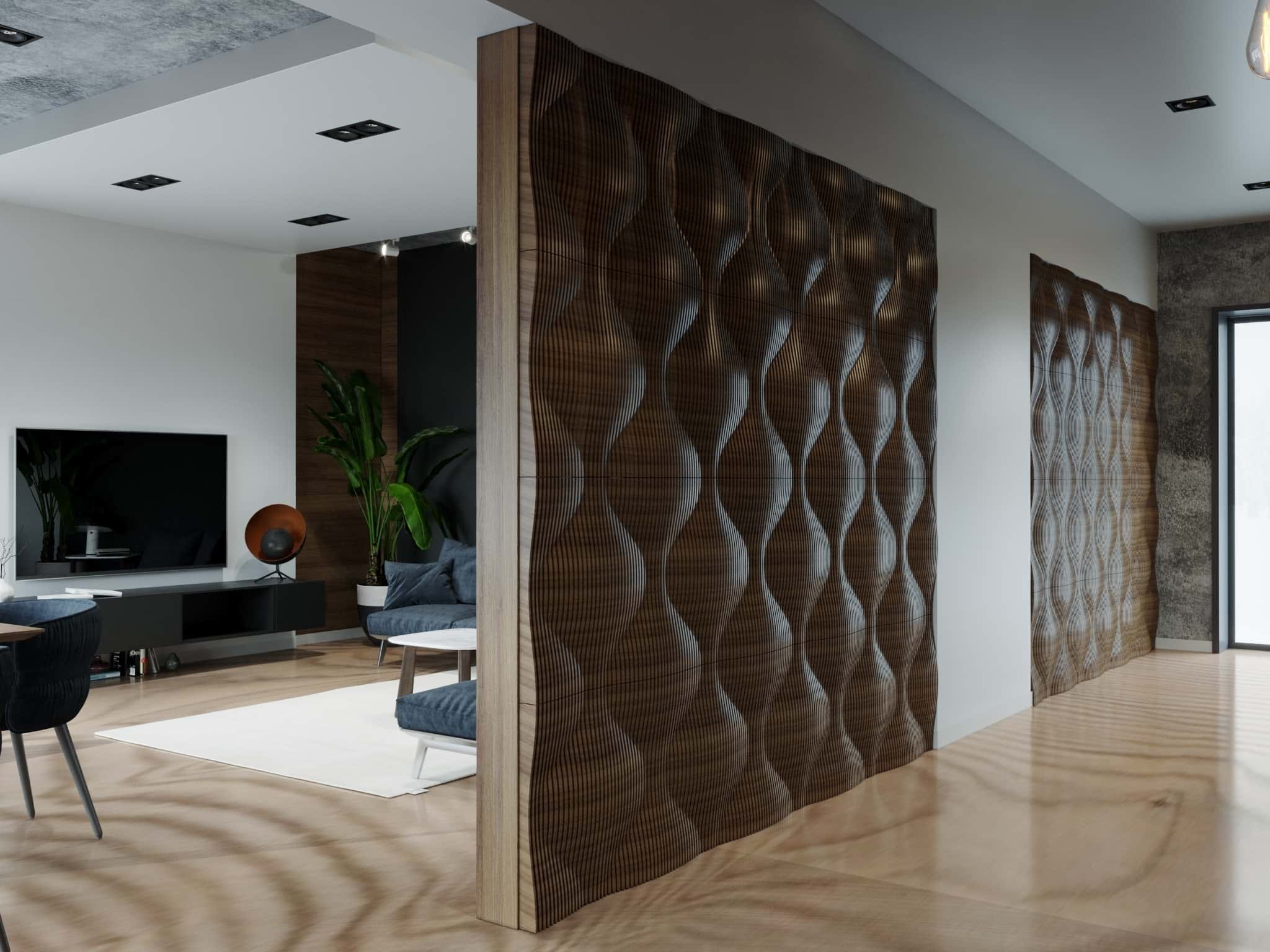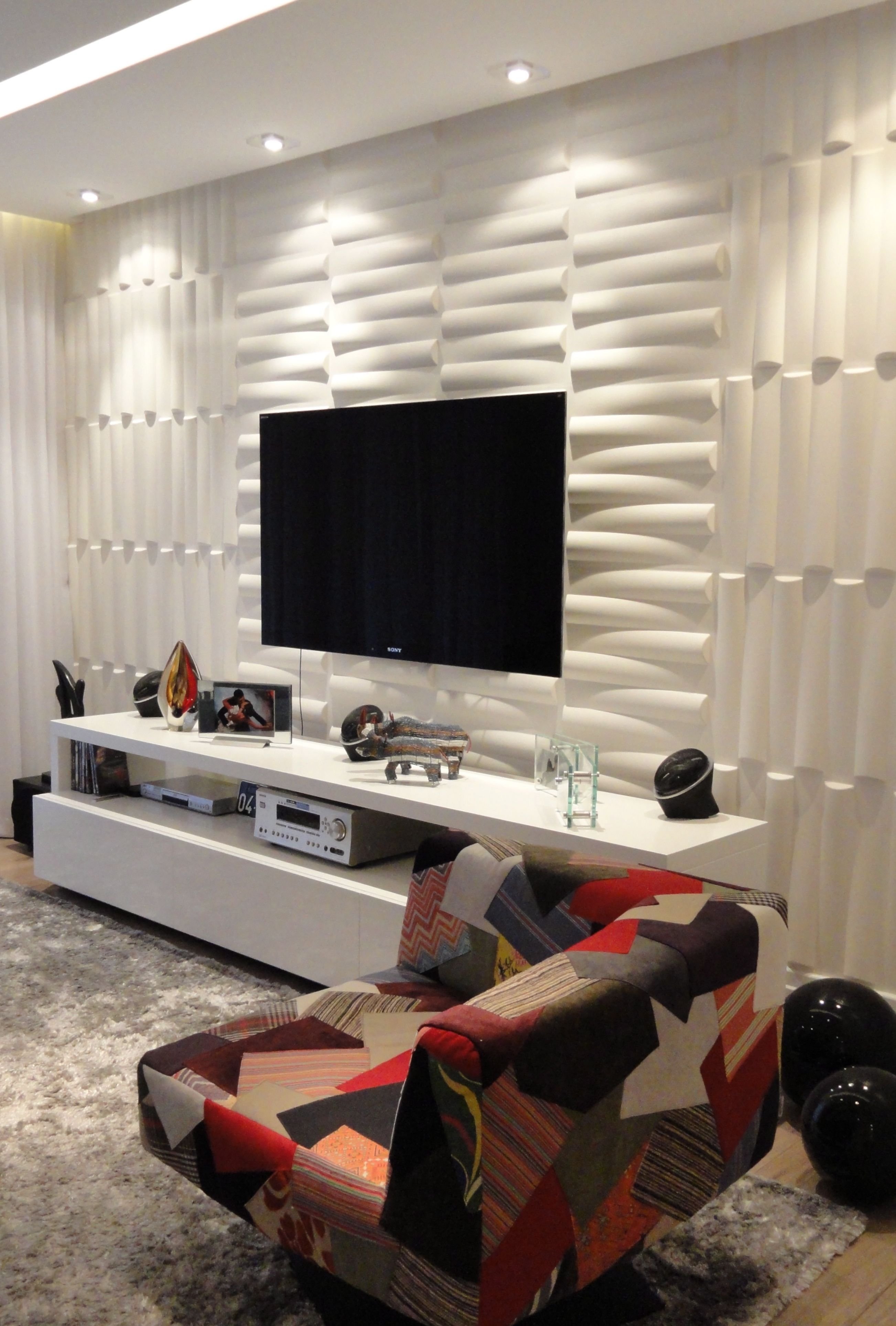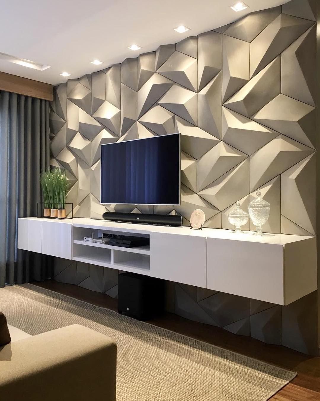 Гипсовая стена в интерьере гостиной в современном интерьере