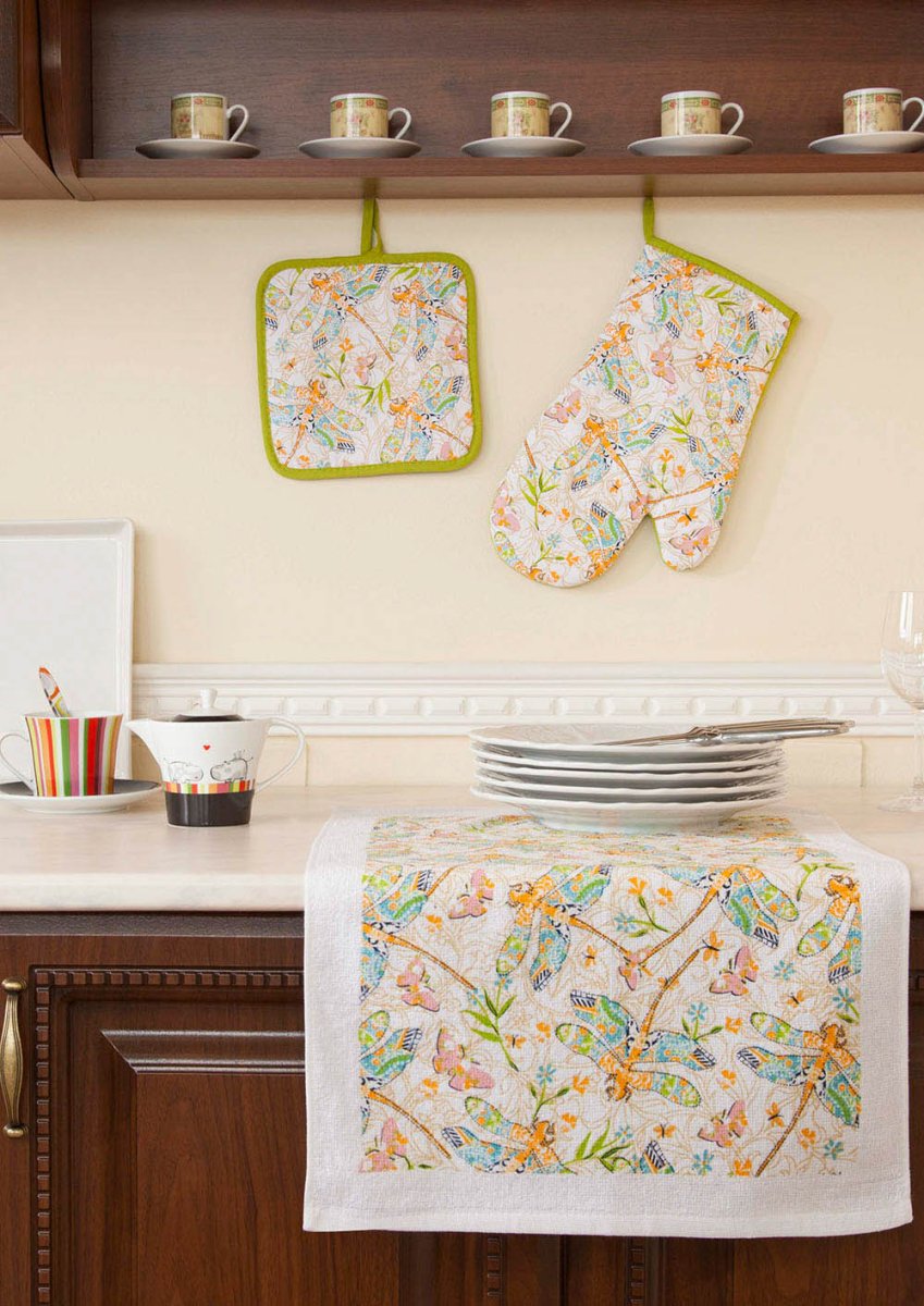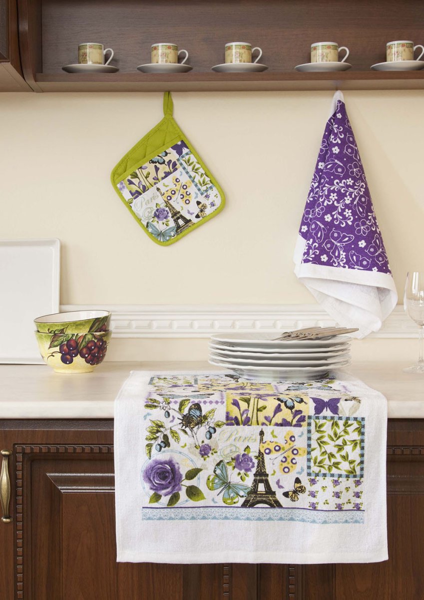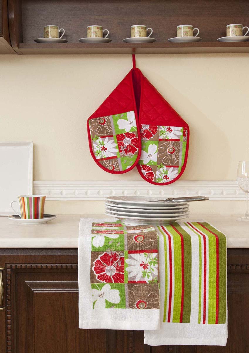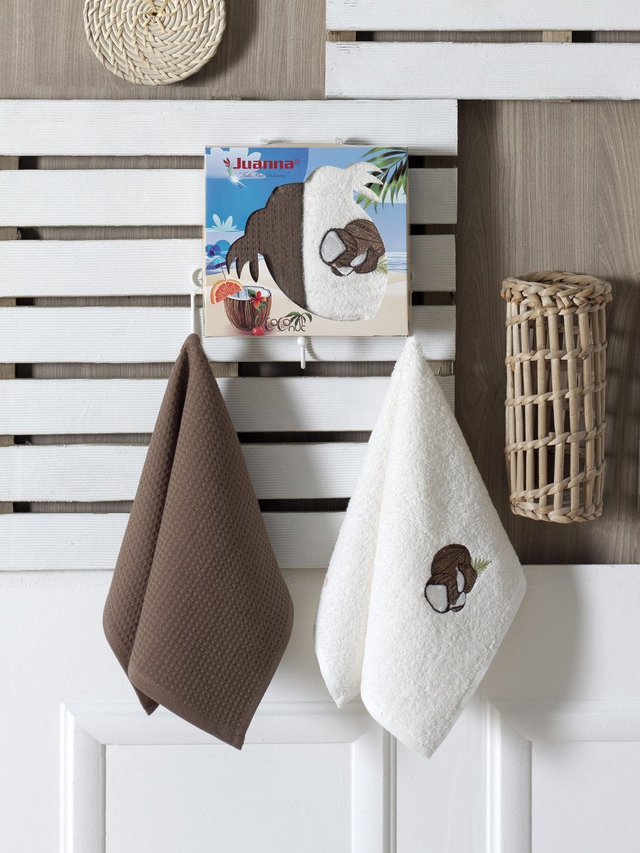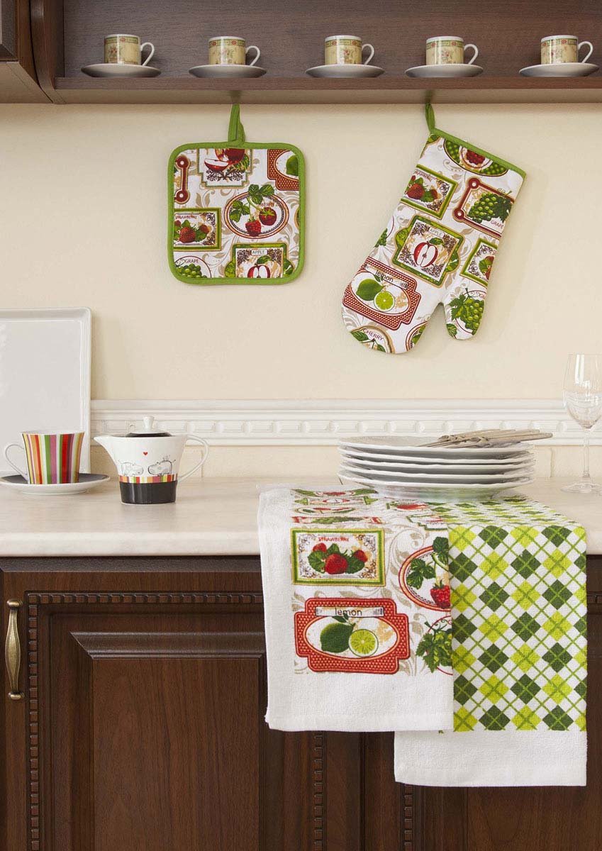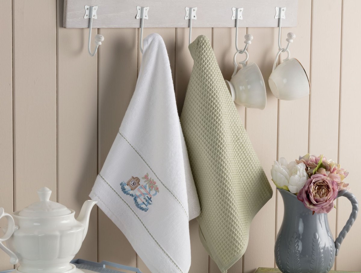 Набор полотенец их 2х шт "ботаника", 35х35,40х70см 100%хб твилл+махра мятный