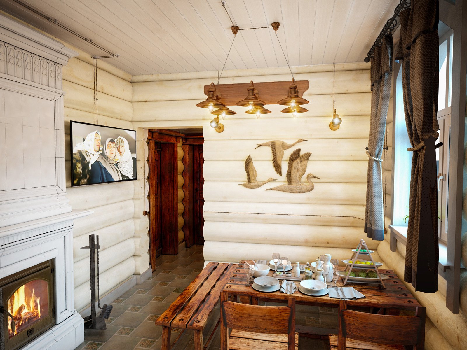 Интерьер в русском стиле в деревянном доме