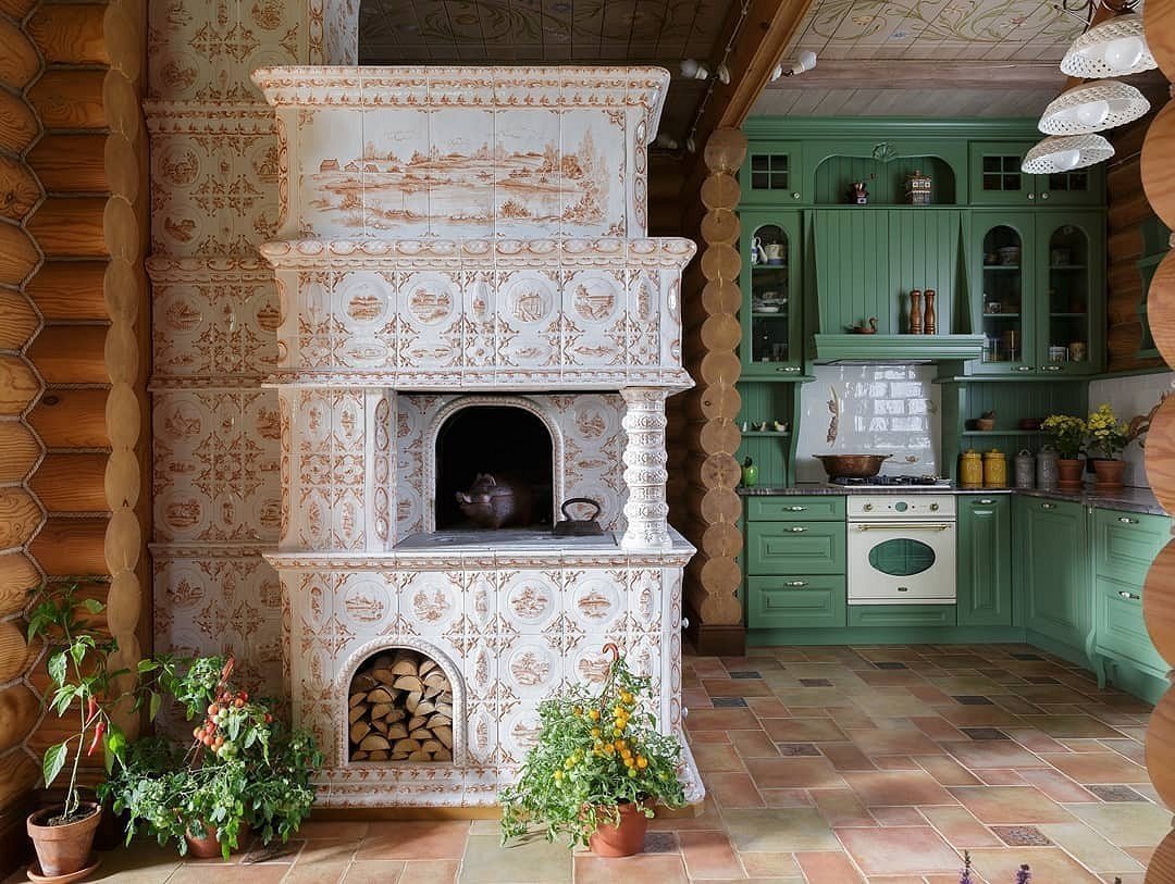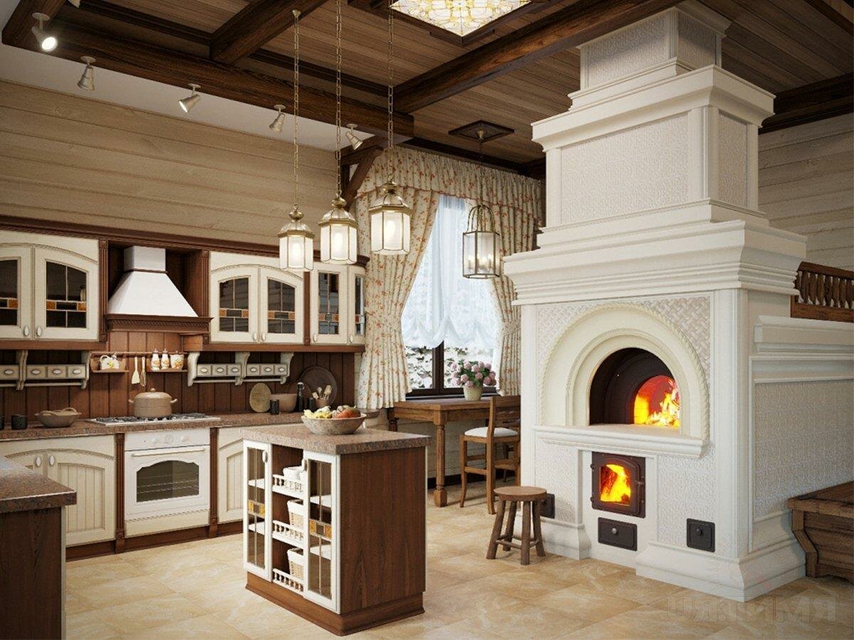 Интерьер кухни с русской печкой