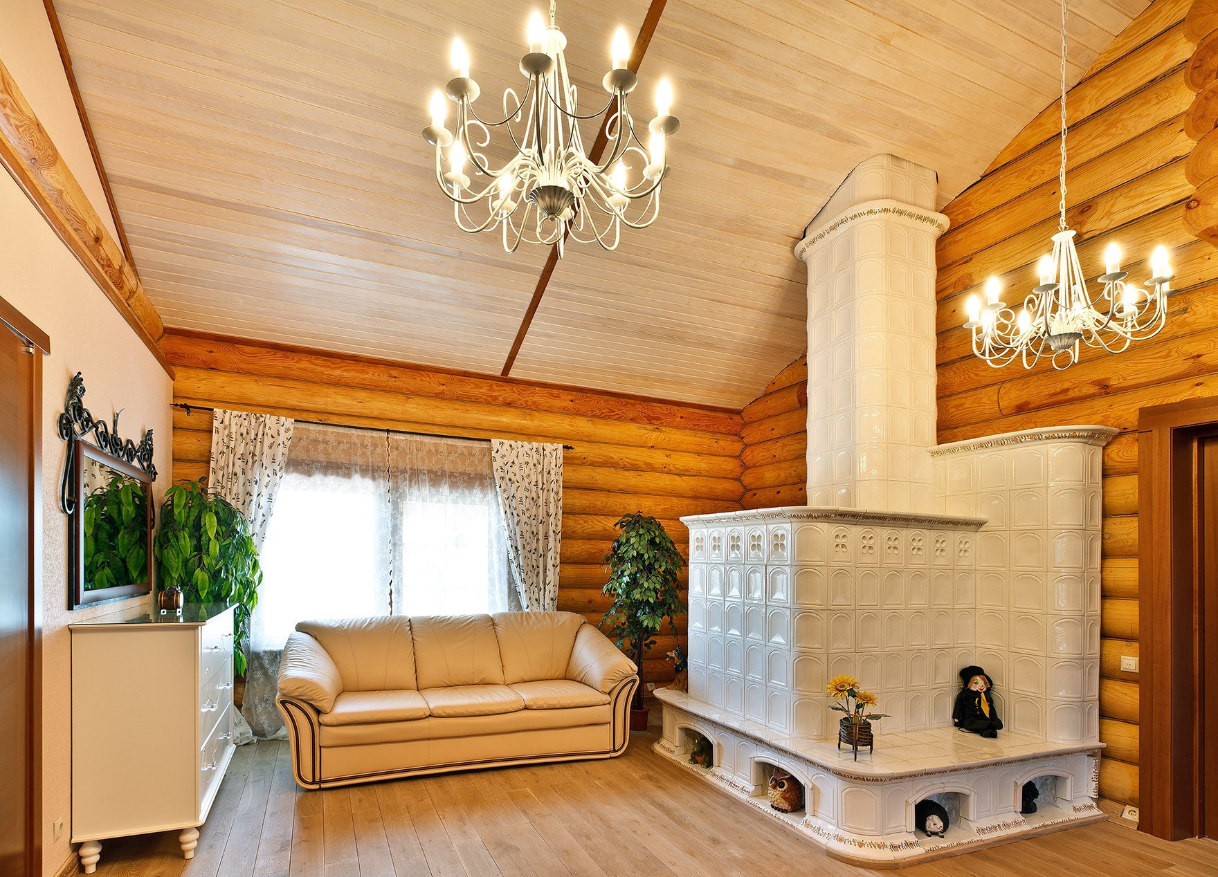 Интерьер в доме из бруса с печкой