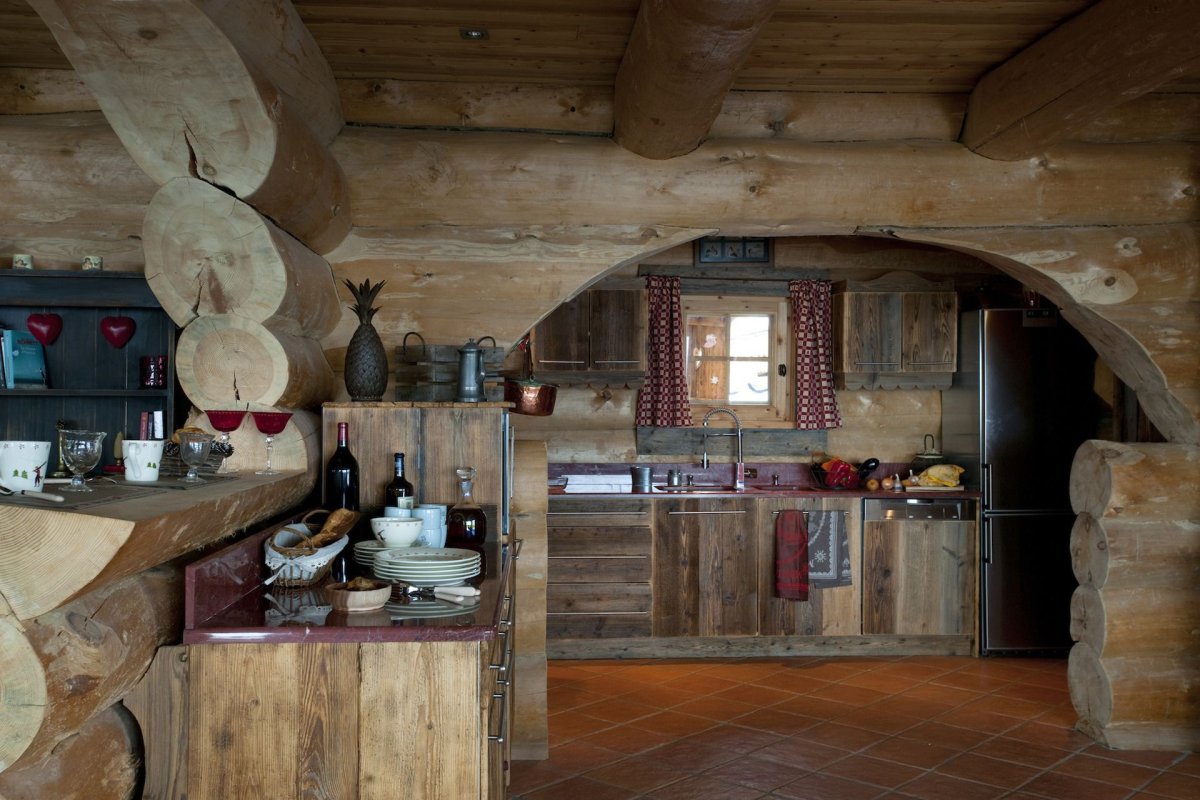 Интерьер кухни в бревенчатой избе