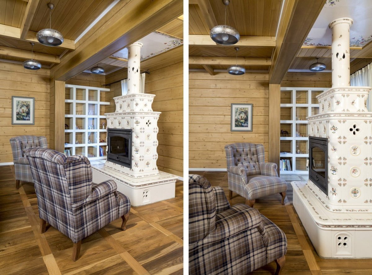 Интерьер дома с печкой