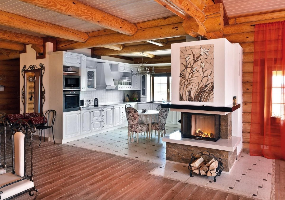 Кухня с камином