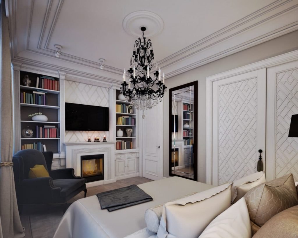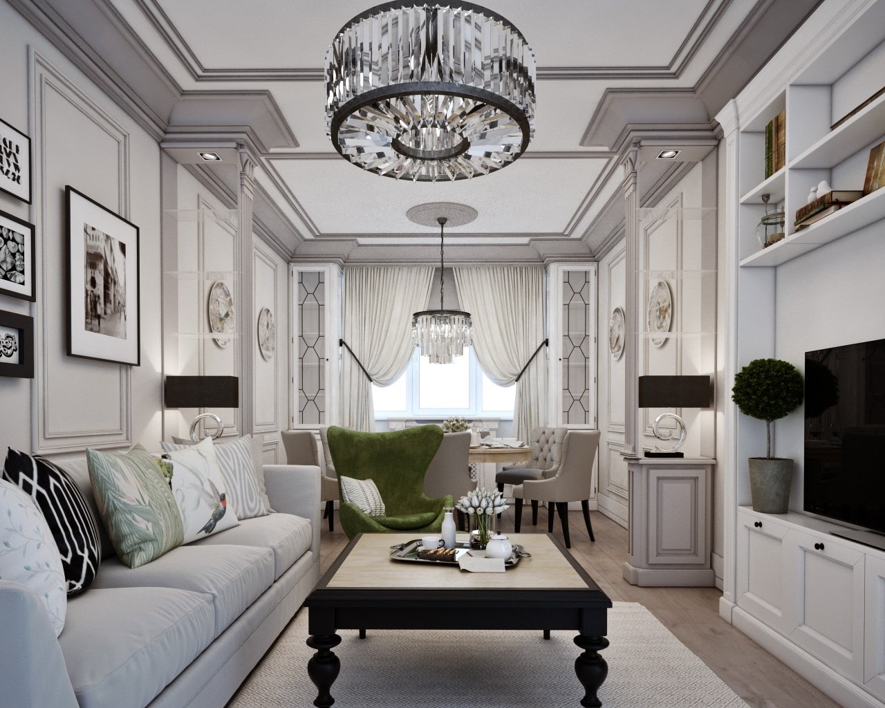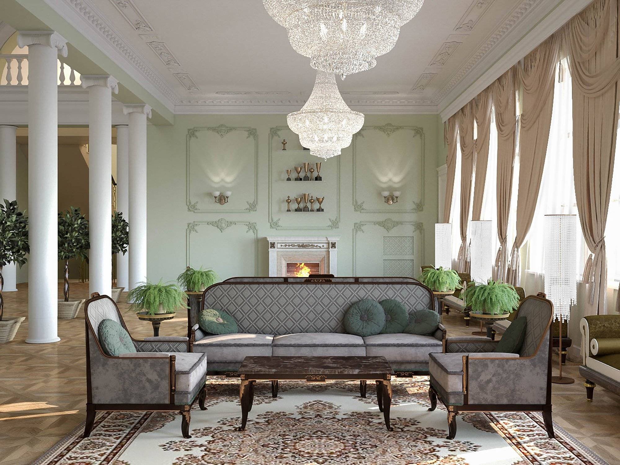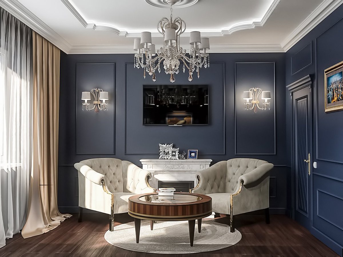 Линкруста в интерьере гостиной в стиле Неоклассика
