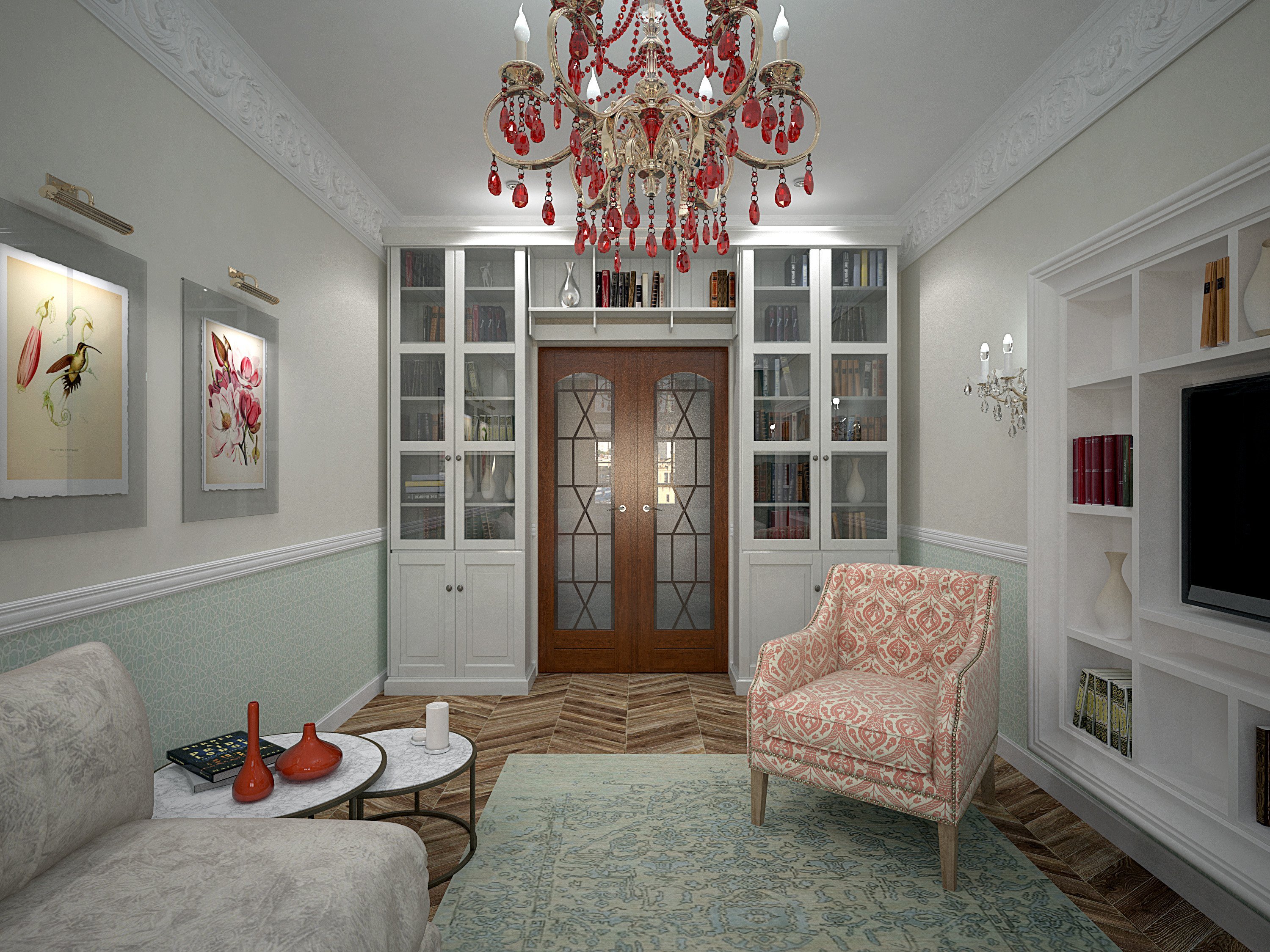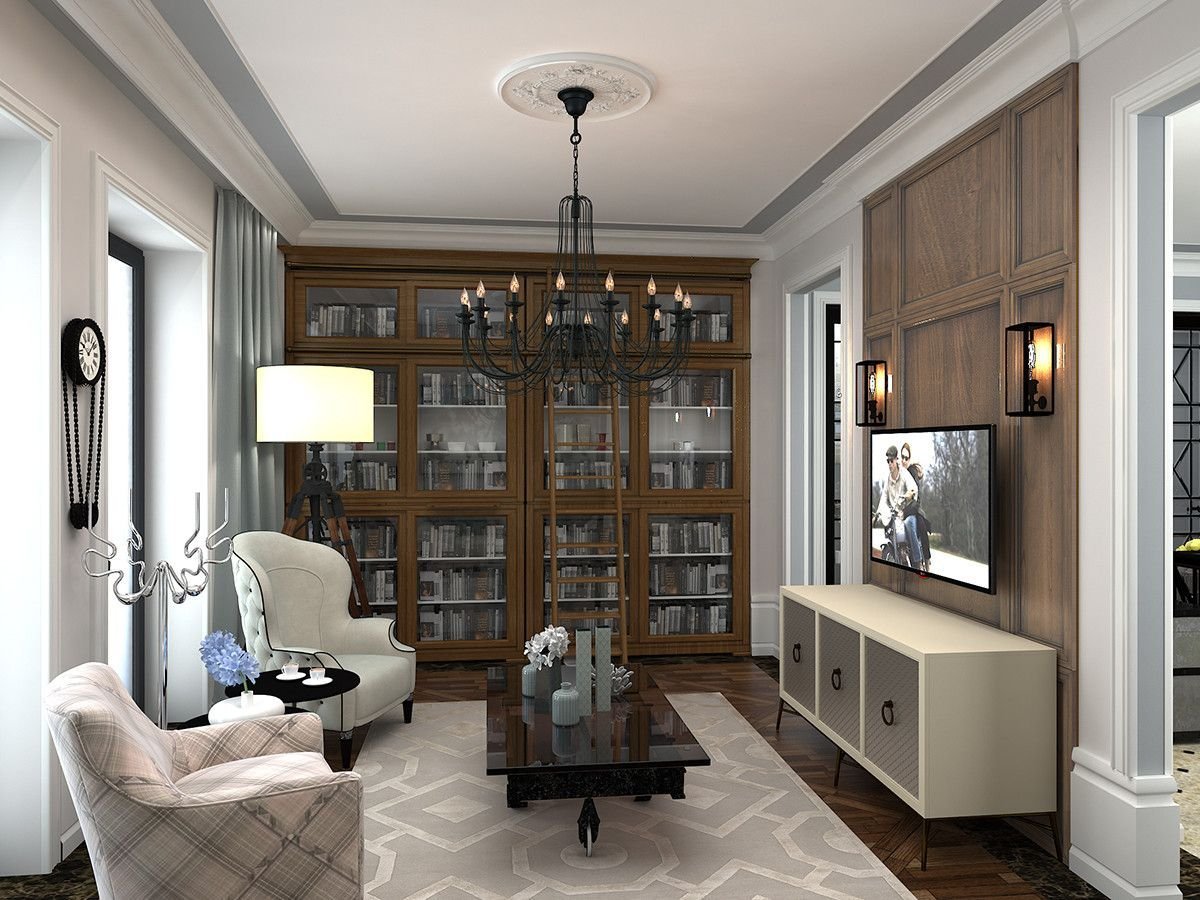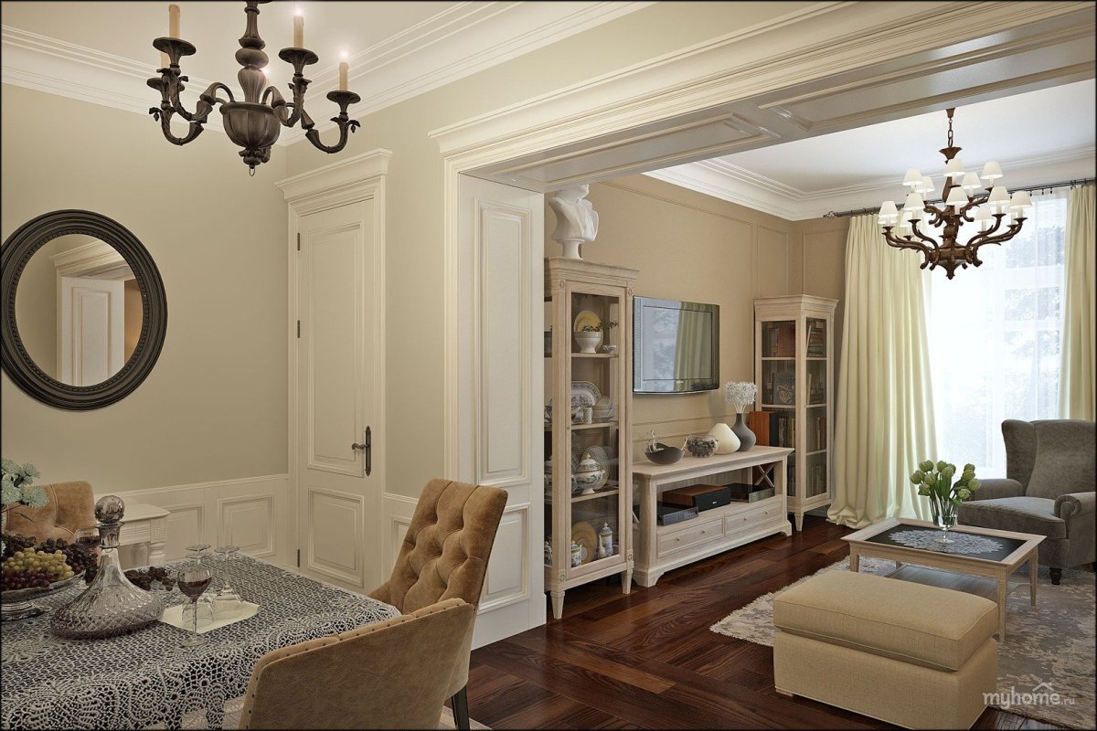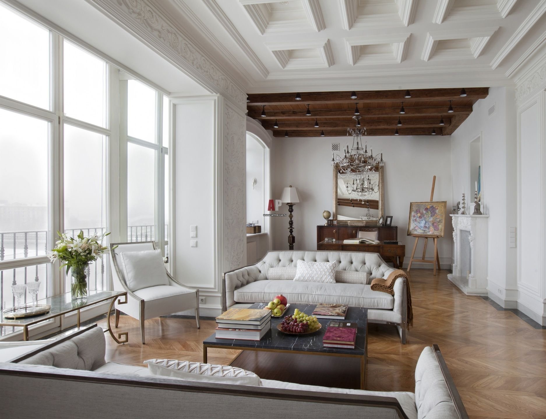 Линкруста в интерьере гостиной в стиле Неоклассика