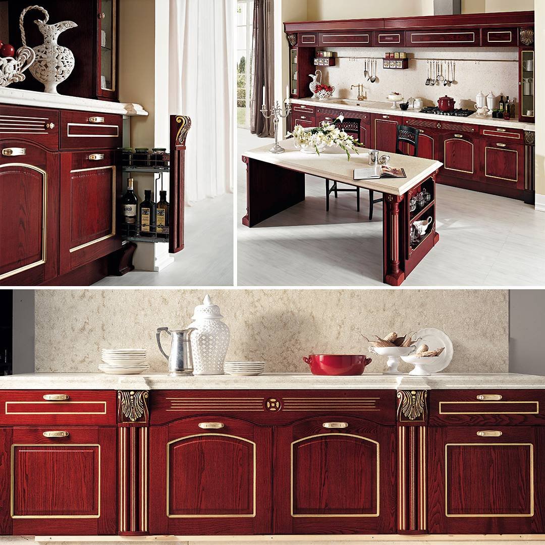 Кухня красное дерево