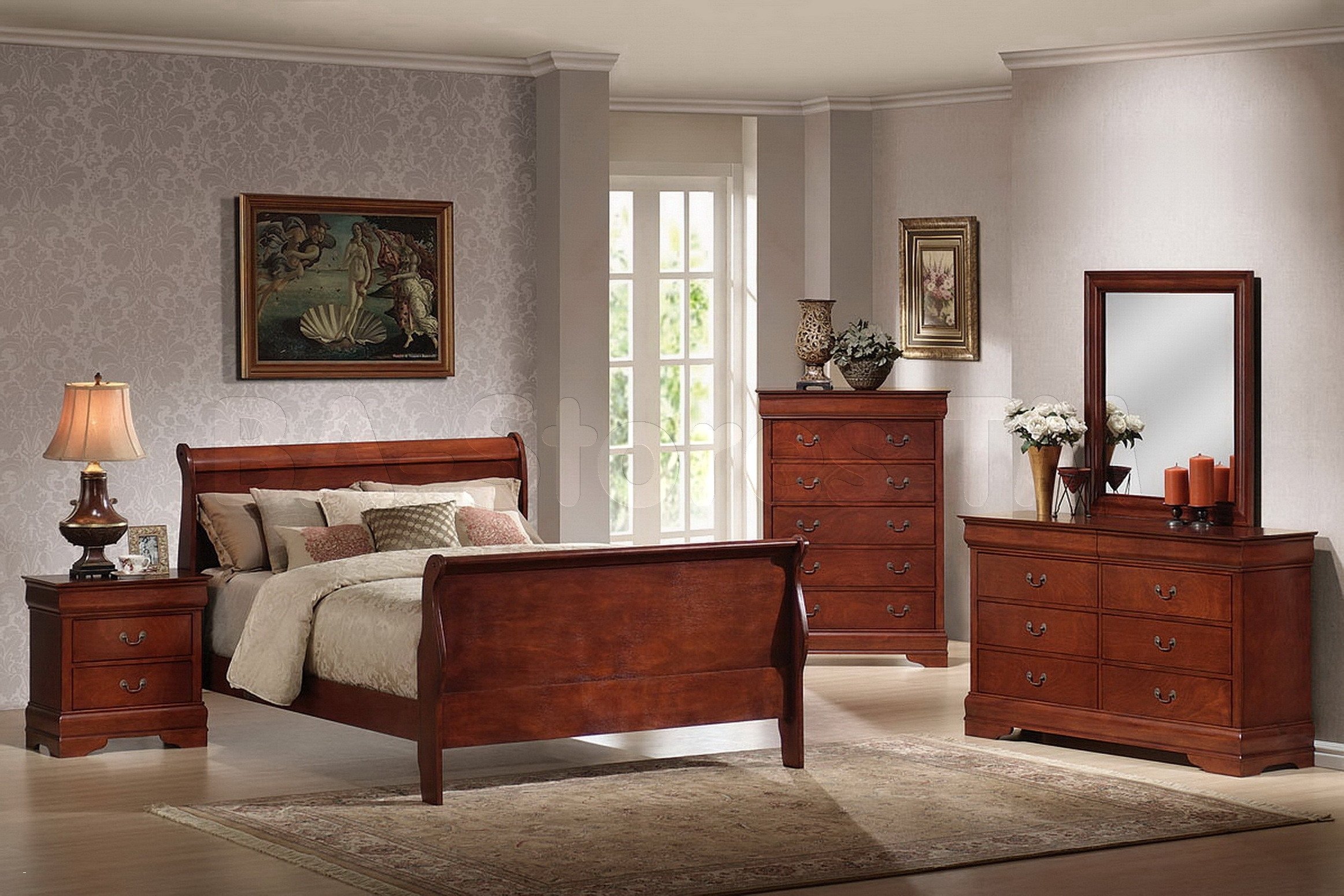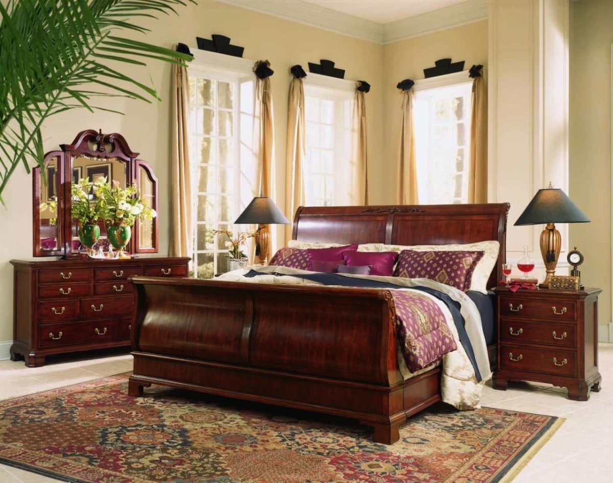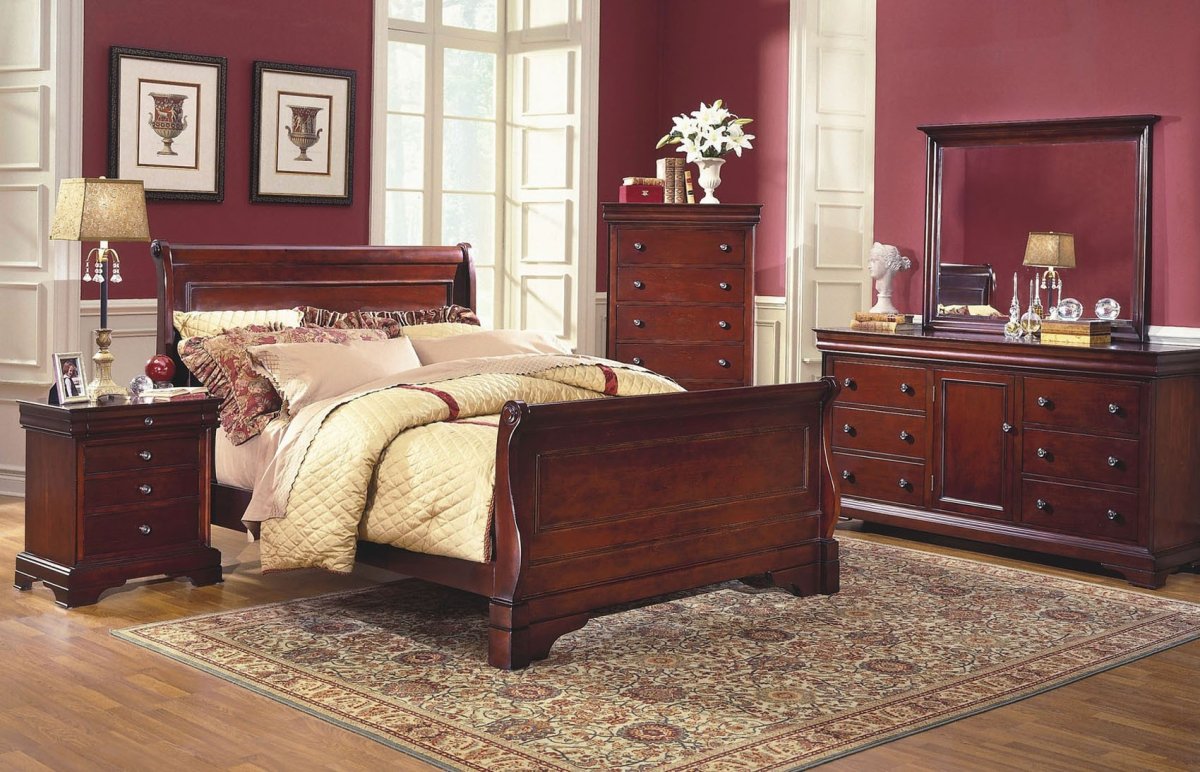 Спальня с мебелью красное дерево