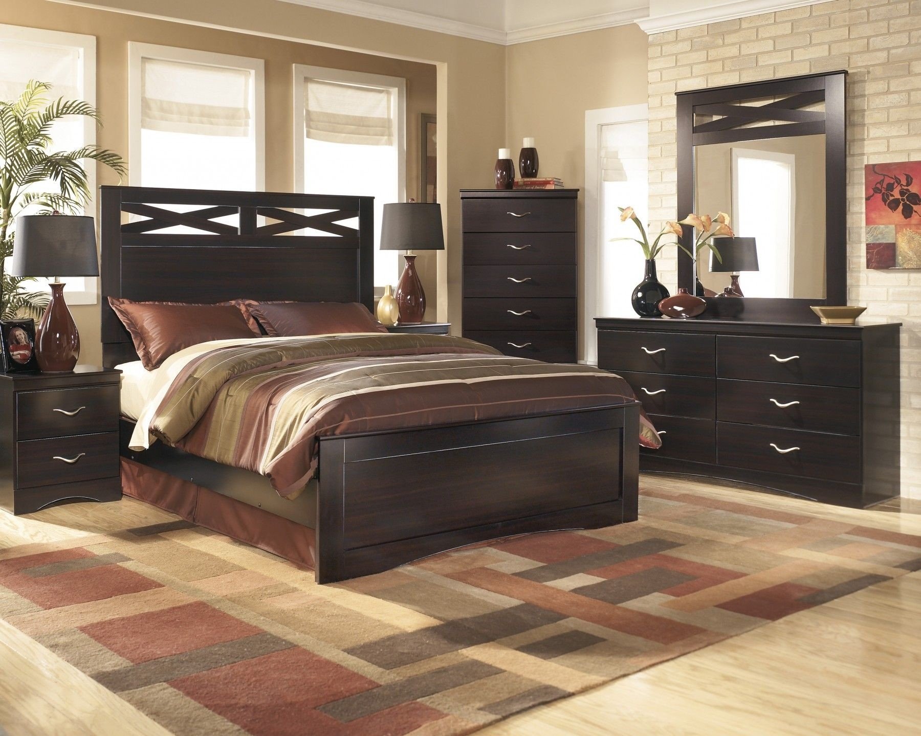 Спальня с темной мебелью
