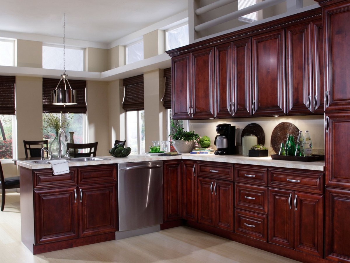 Кухня цвета махагон