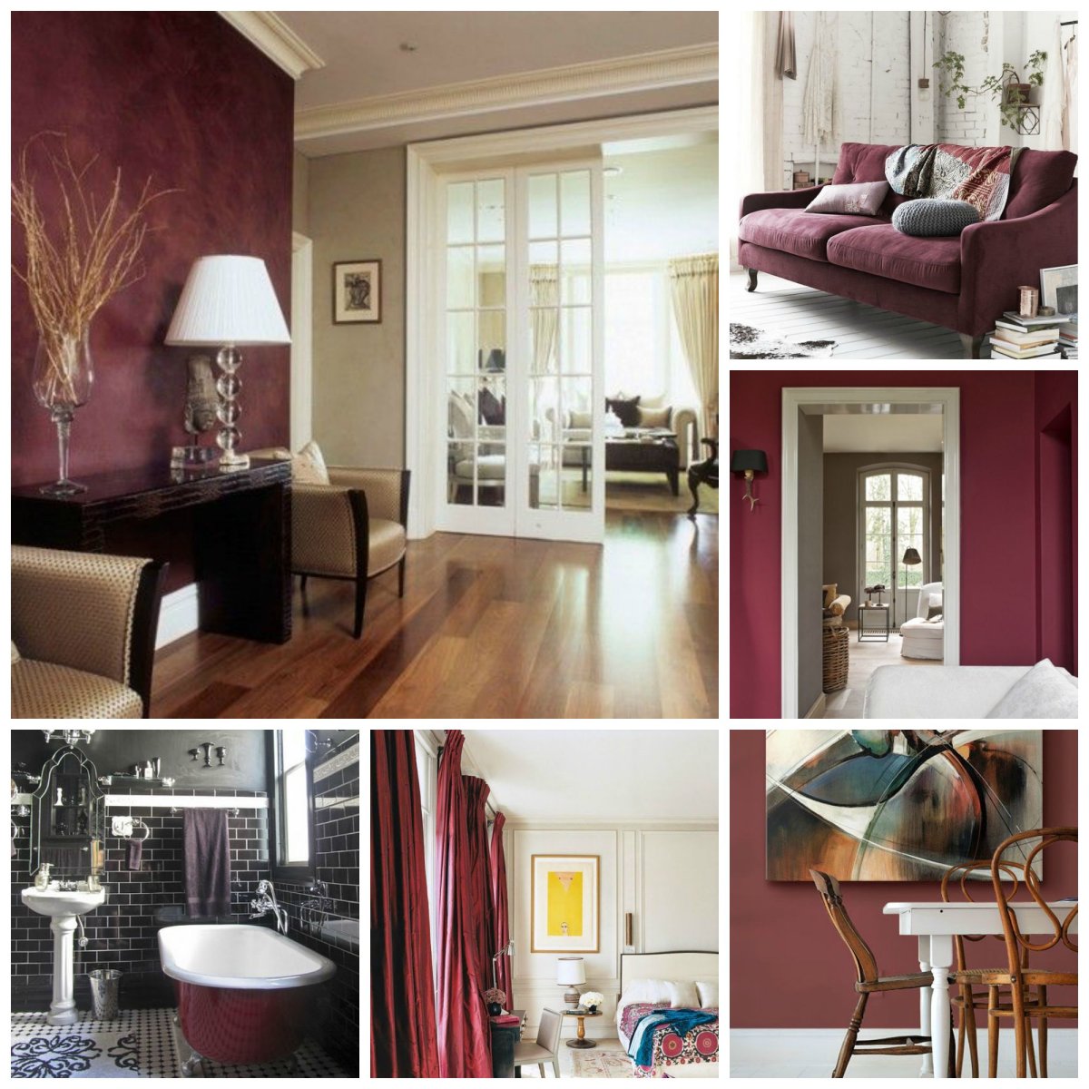 Сочетание винного цвета в интерьере