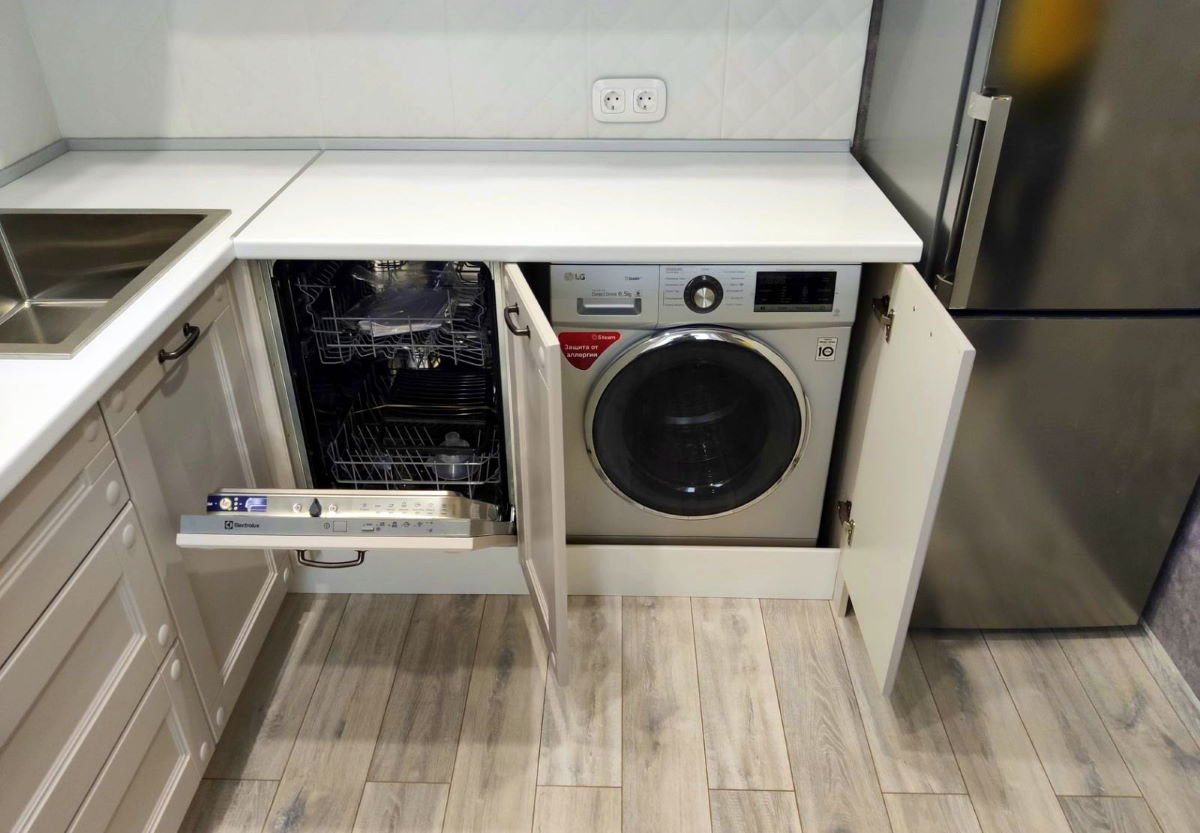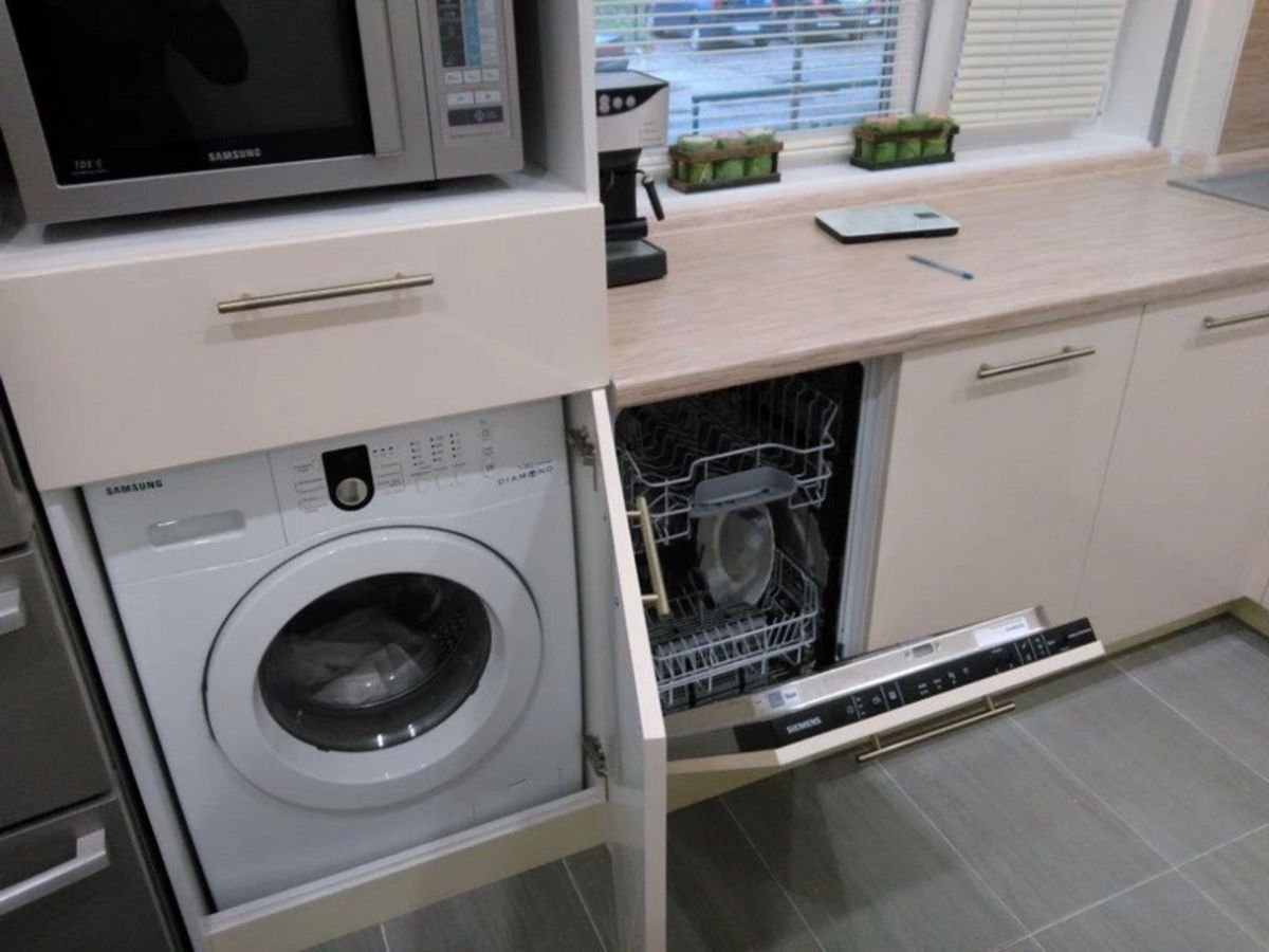 Кухня со стиральной машиной и посудомоечной машиной