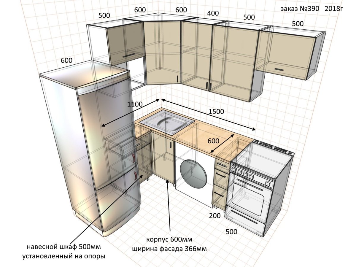 Схема угловой кухни хрущевки с размерами