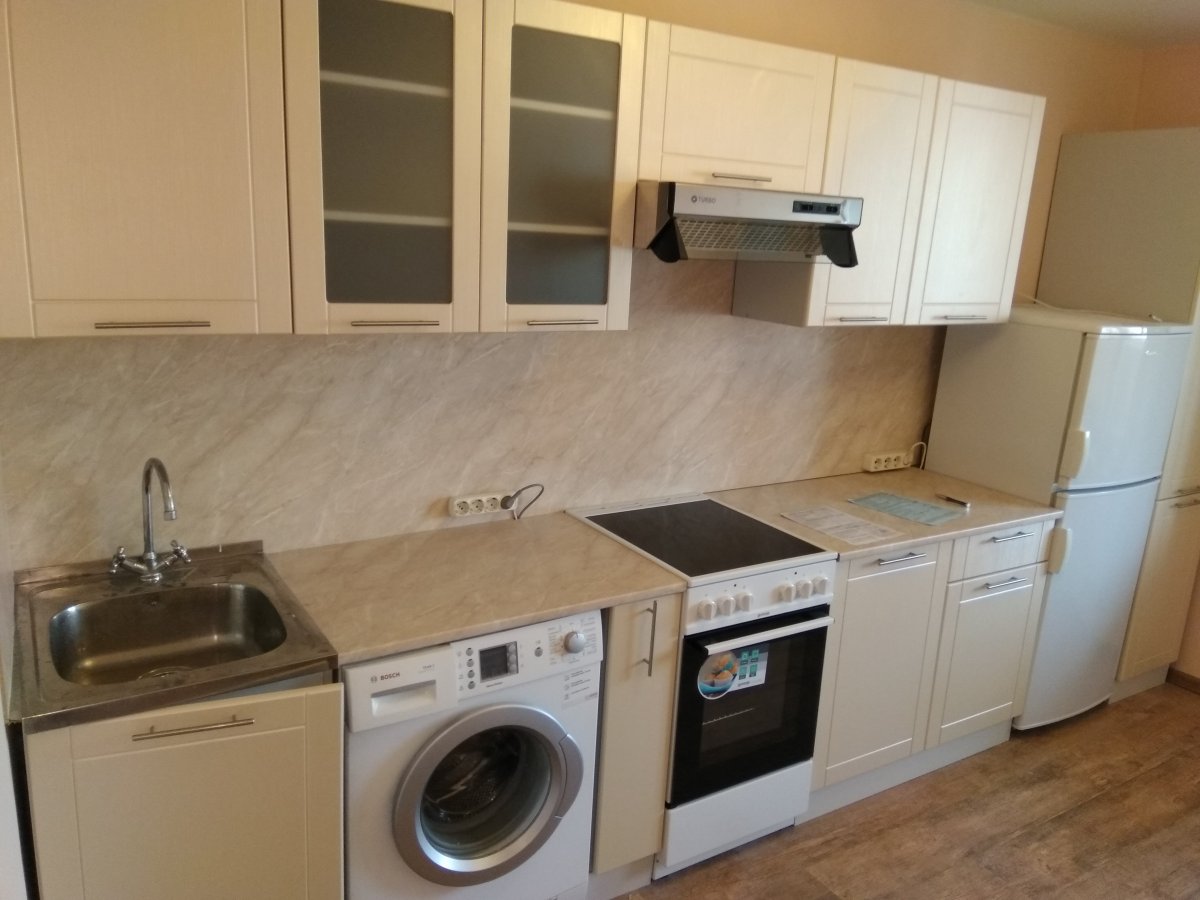 Прямая кухня со стиральной машиной