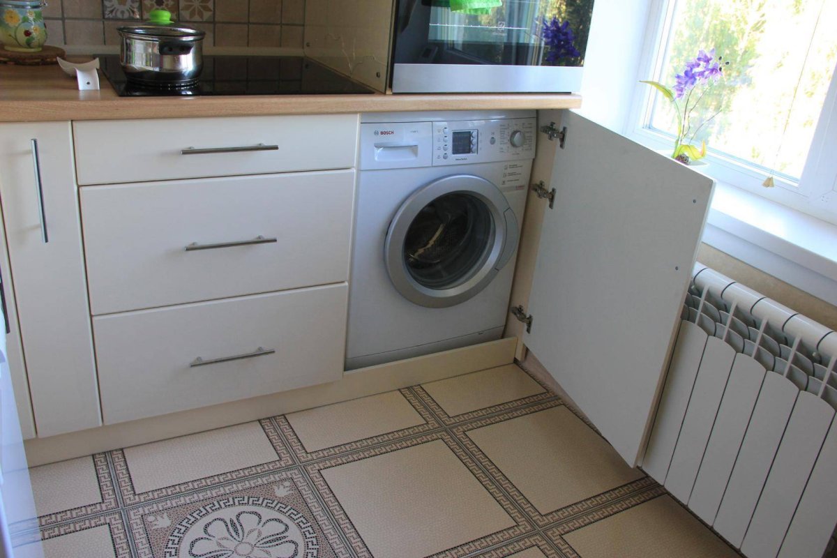 Стиральная машина на маленькой кухне