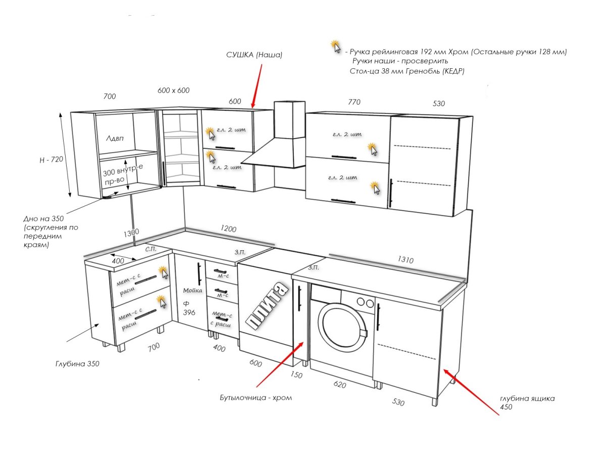 Высота кухонного гарнитура со стиральной машинкой