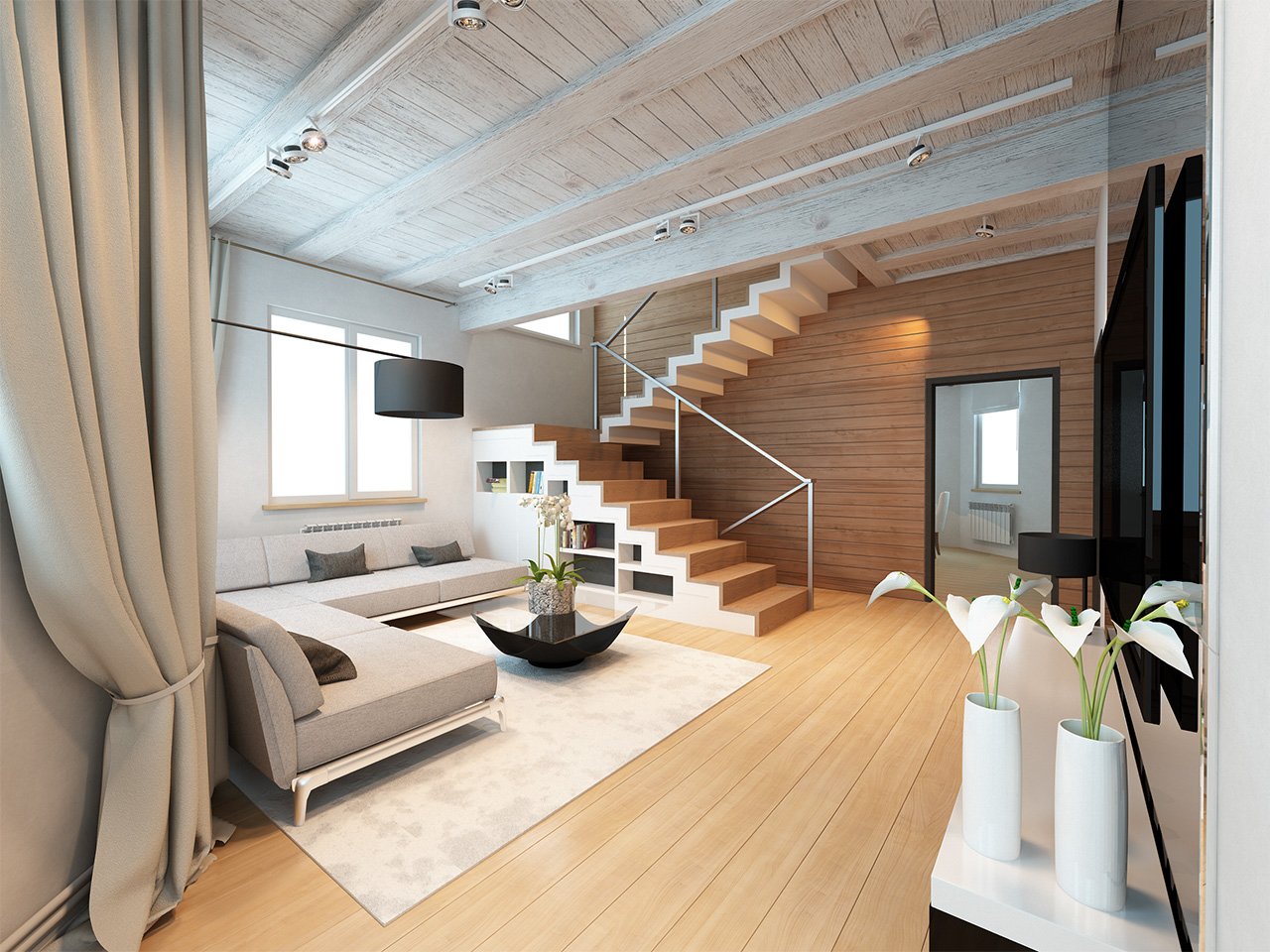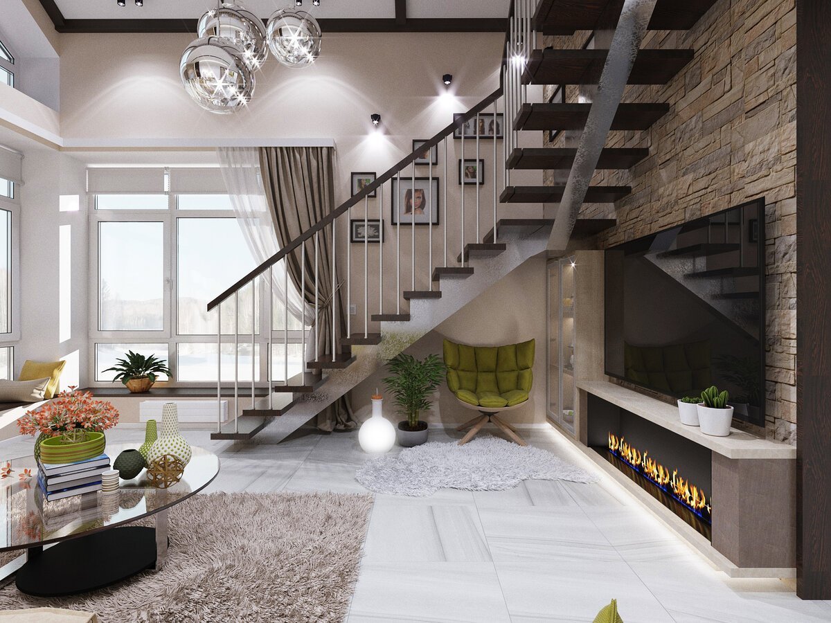 Гостиная с лестницей на второй этаж