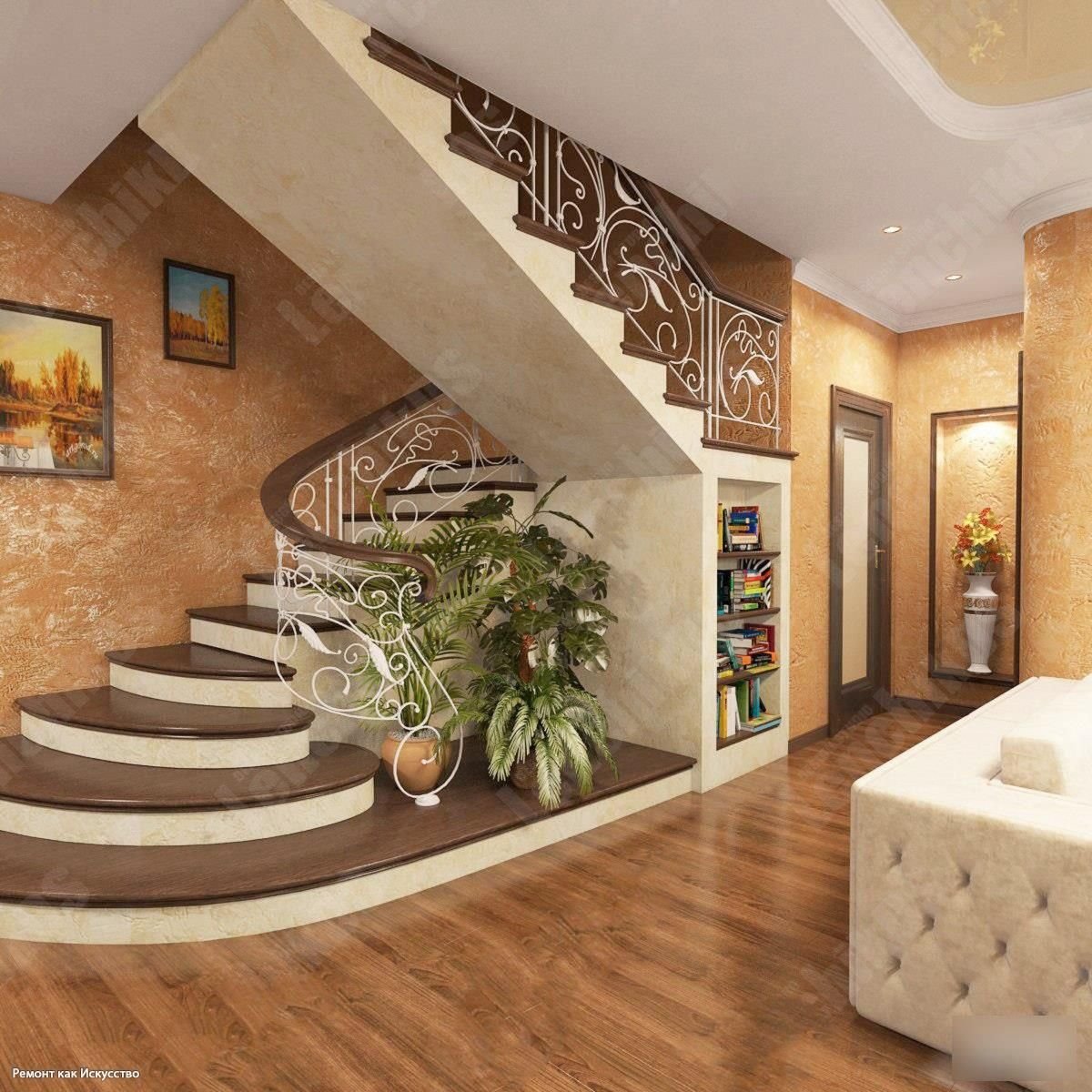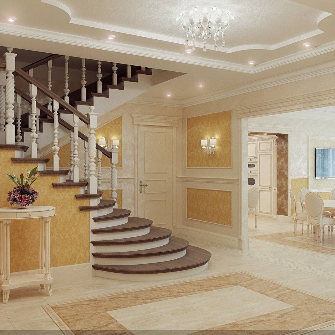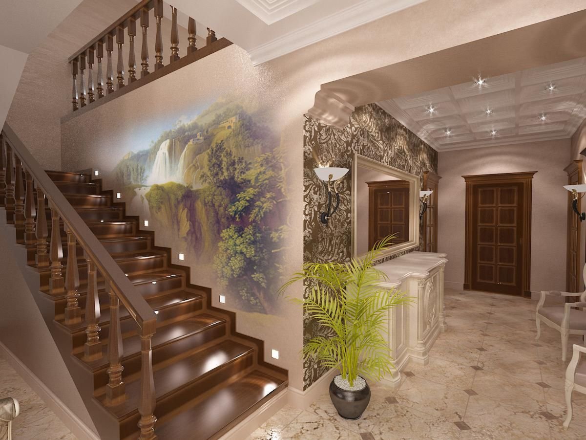 Интерьер холла с лестницей