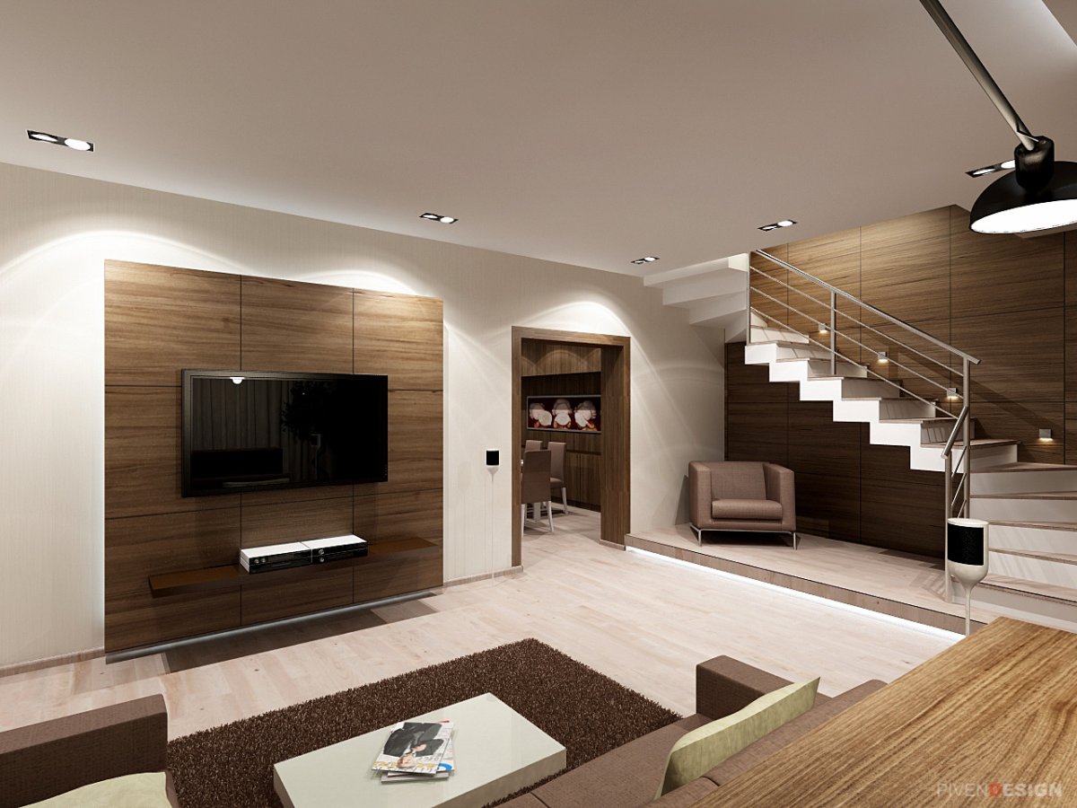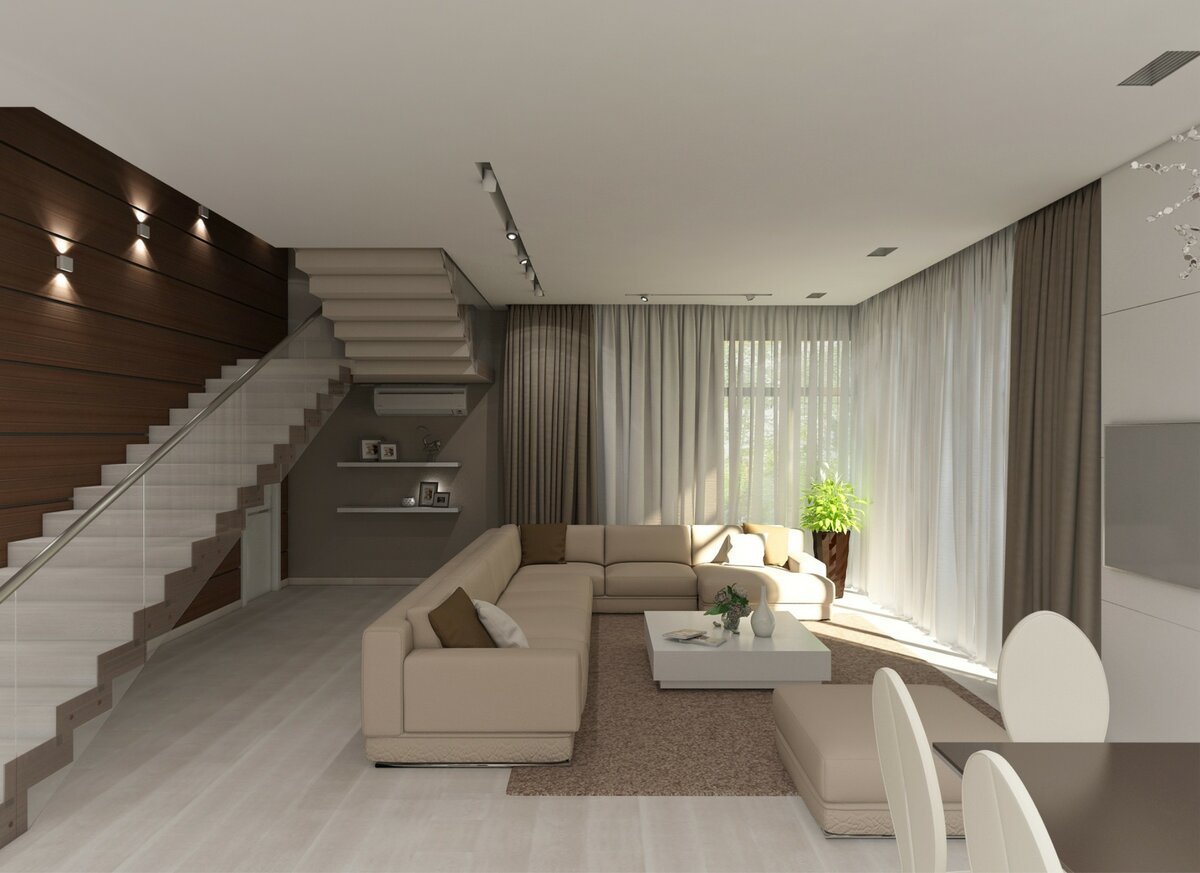 Современная отделка гостиной в частном доме