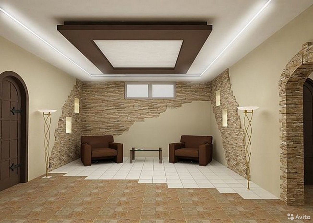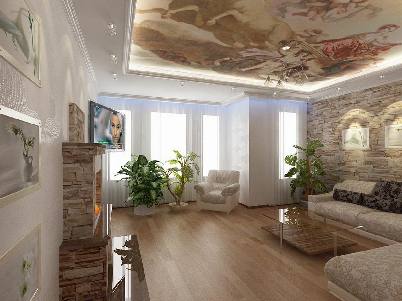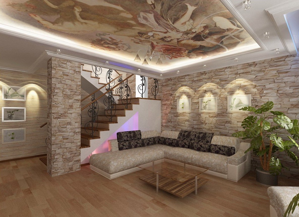 Отделка гостиной камнем
