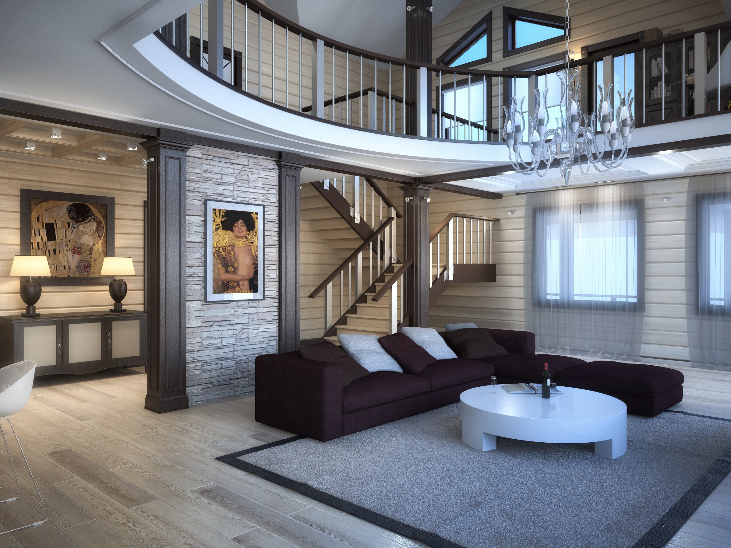 Интерьер двухэтажного коттеджа