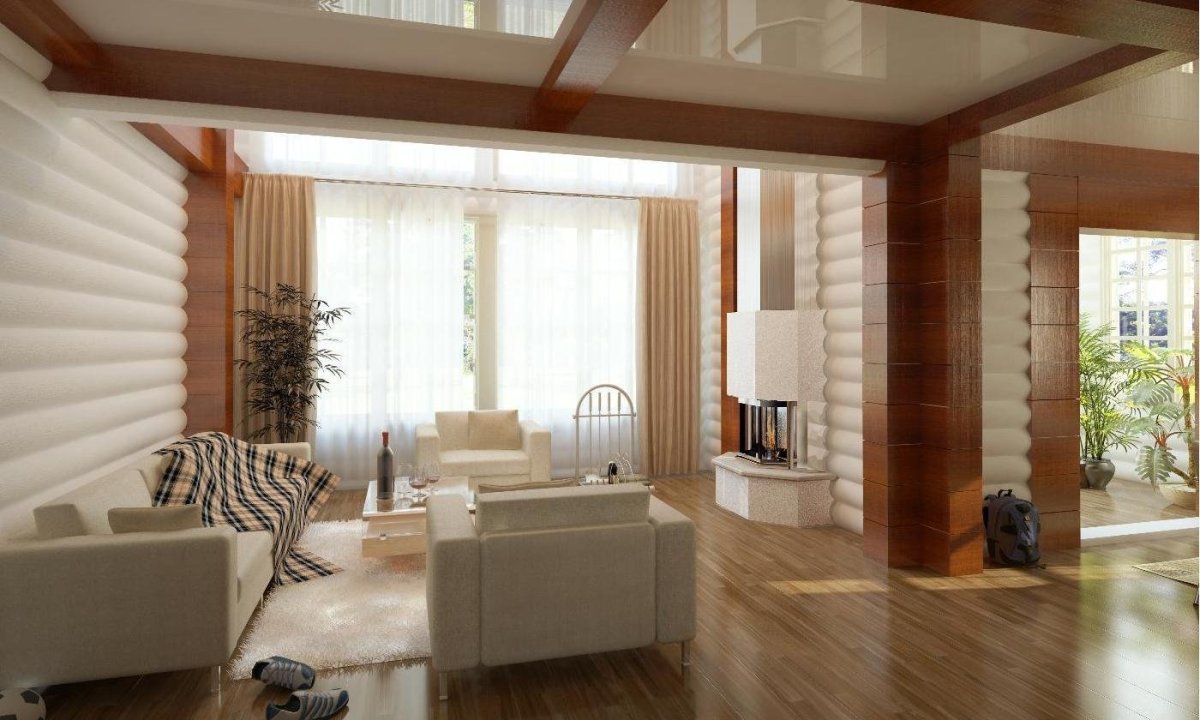 Отделка гостиной деревом