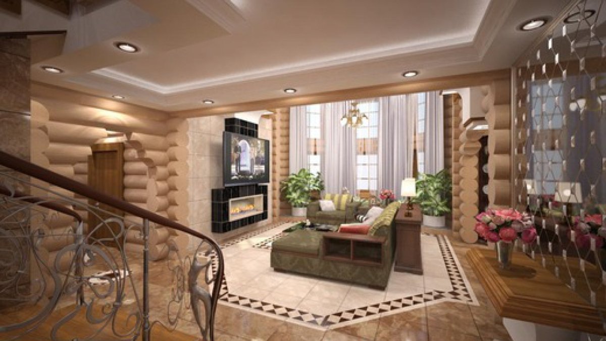 Планировка гостиной в доме из бруса