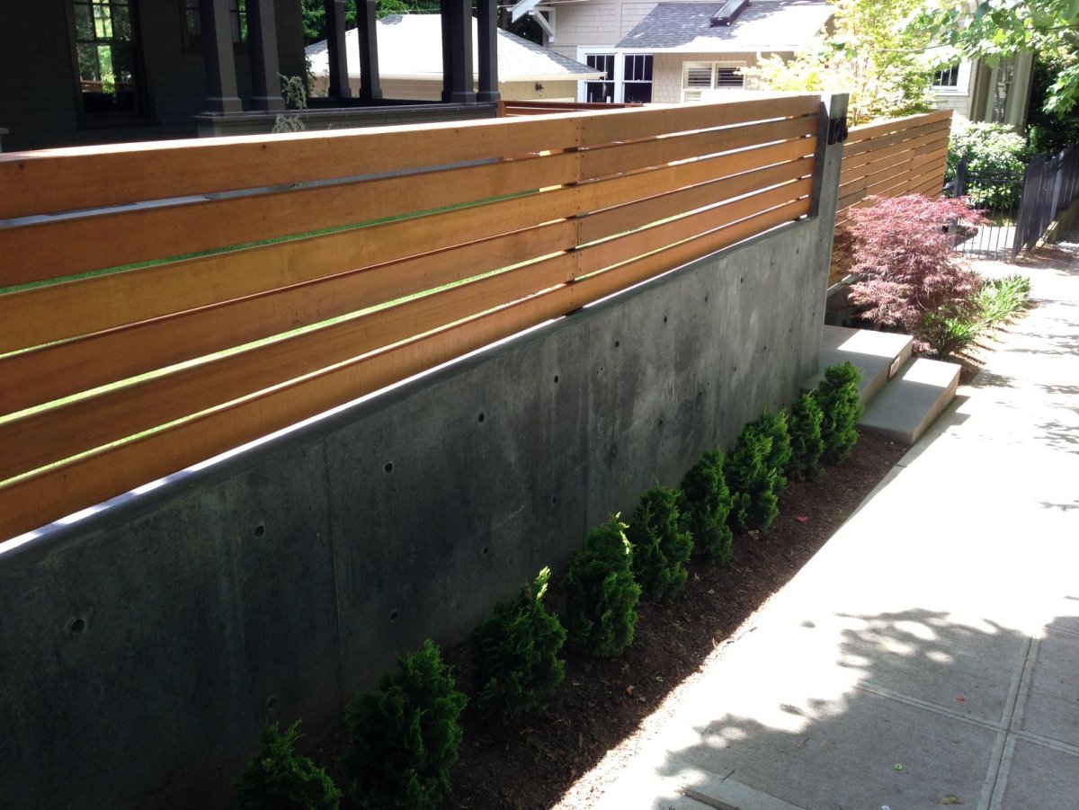 Современный забор с бетоном
