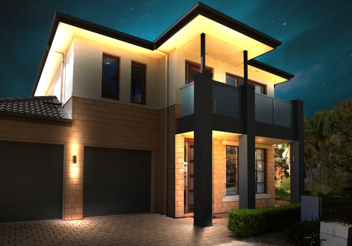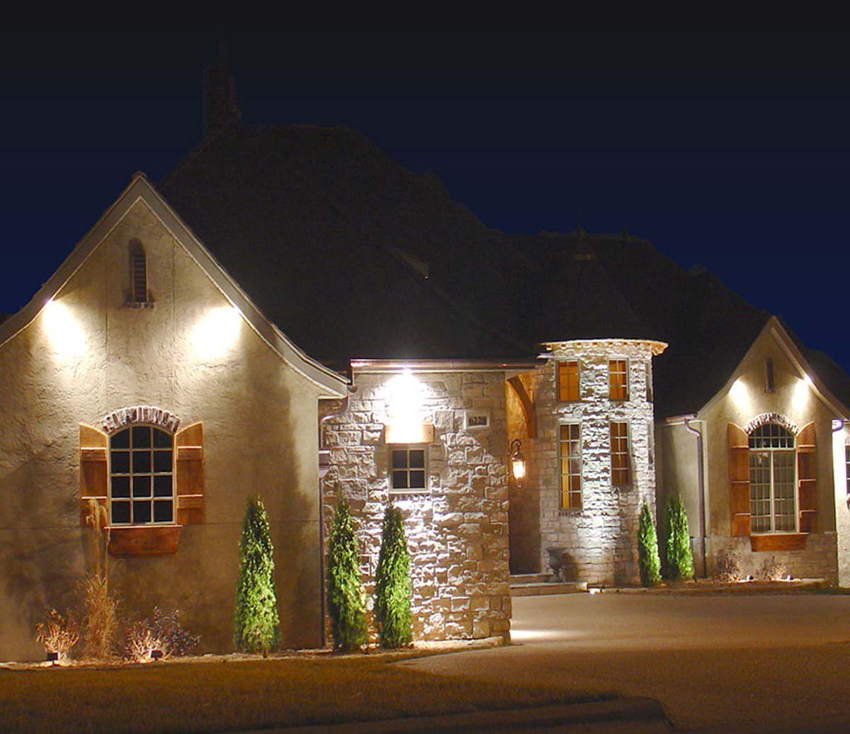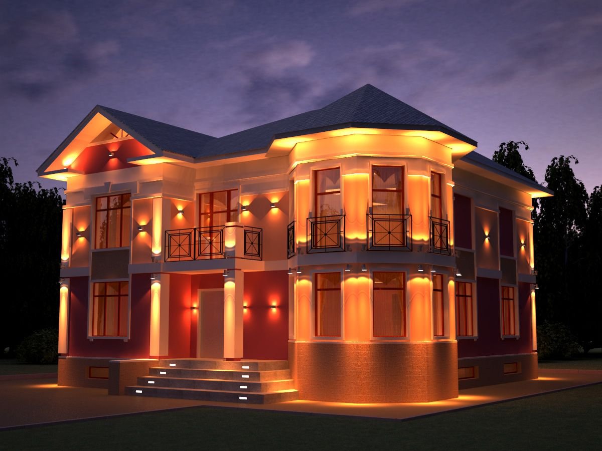 Подсветка фасада коттеджа двухэтажного