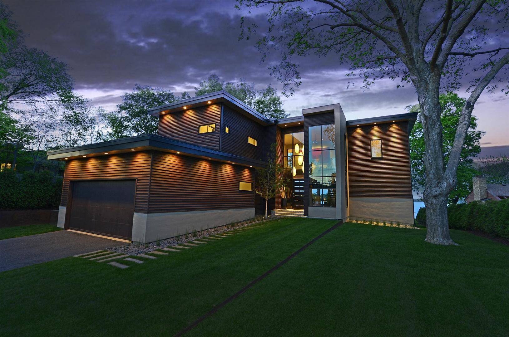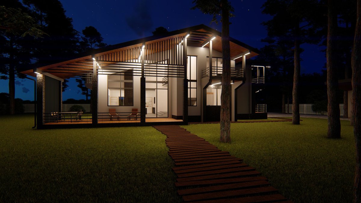 Двухэтажный дом с подсветкой