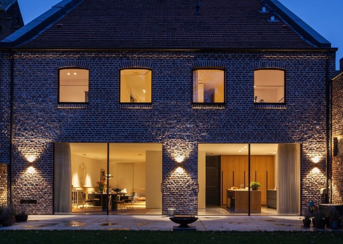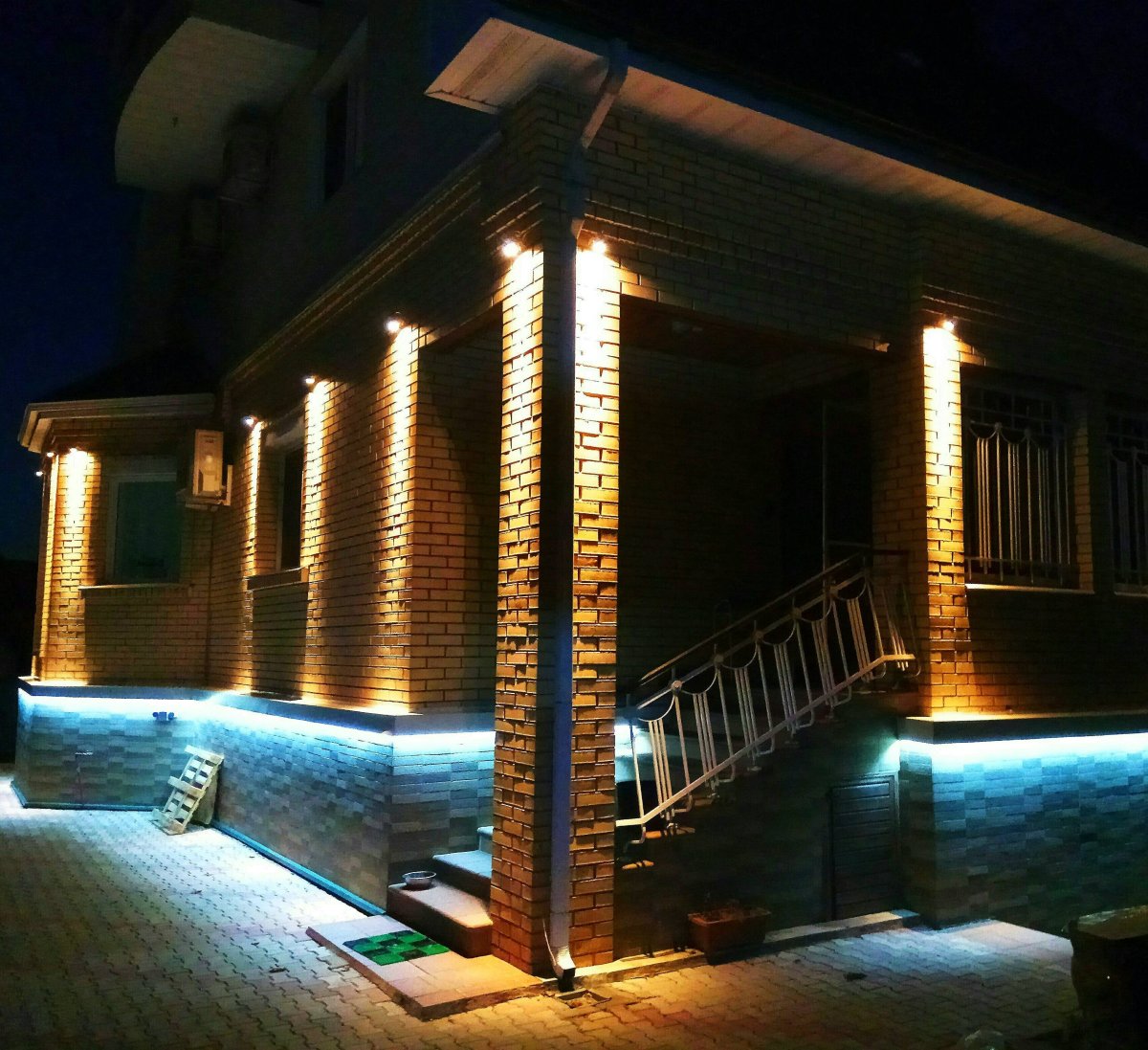 Кирпичный дом с подсветкой