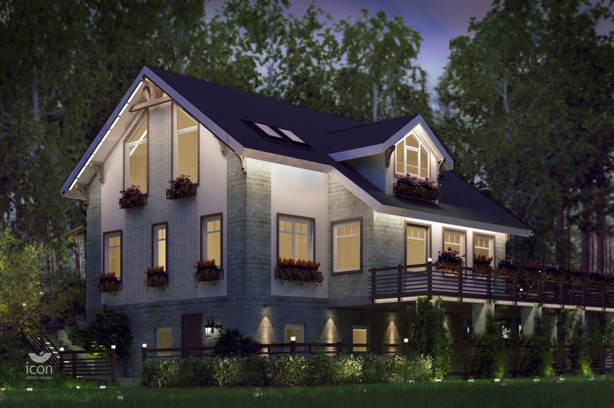 Фасадное освещение дома с мансардой