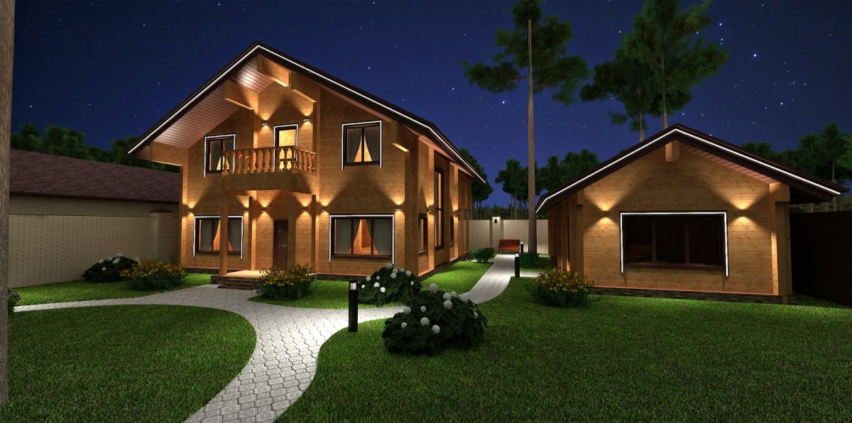 Подсветка фасадов деревянных домов