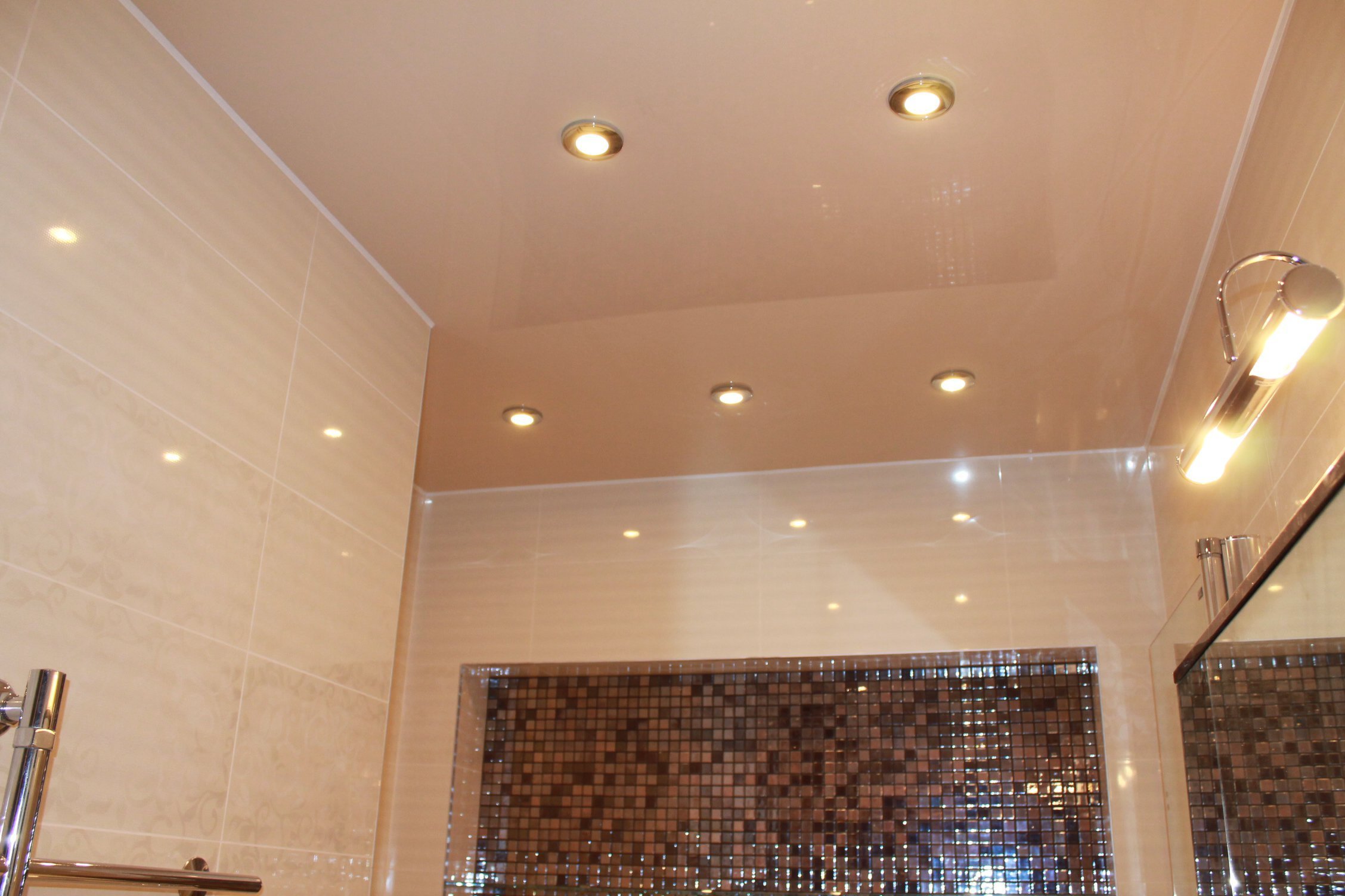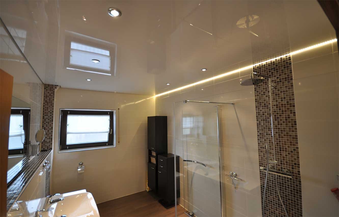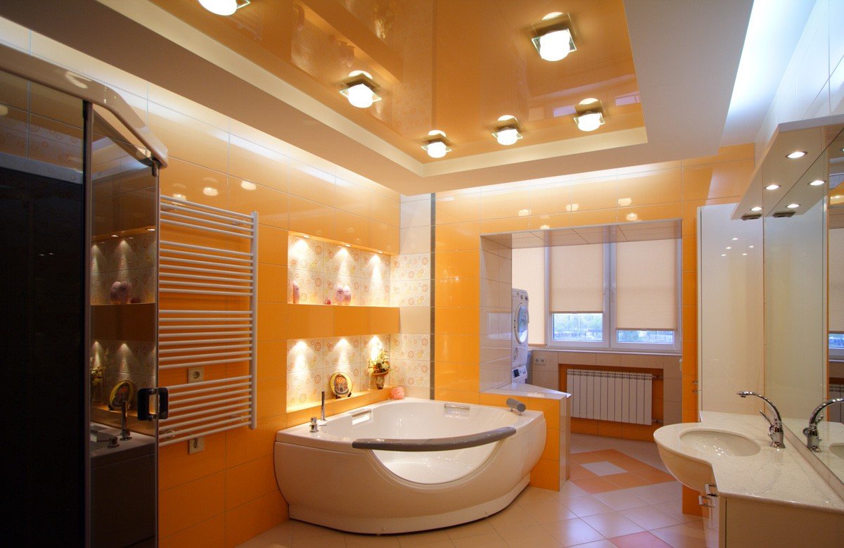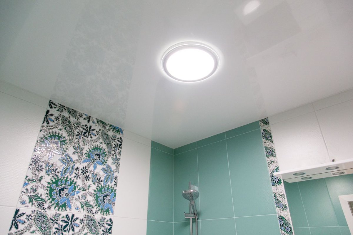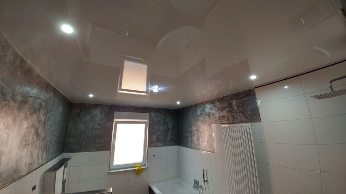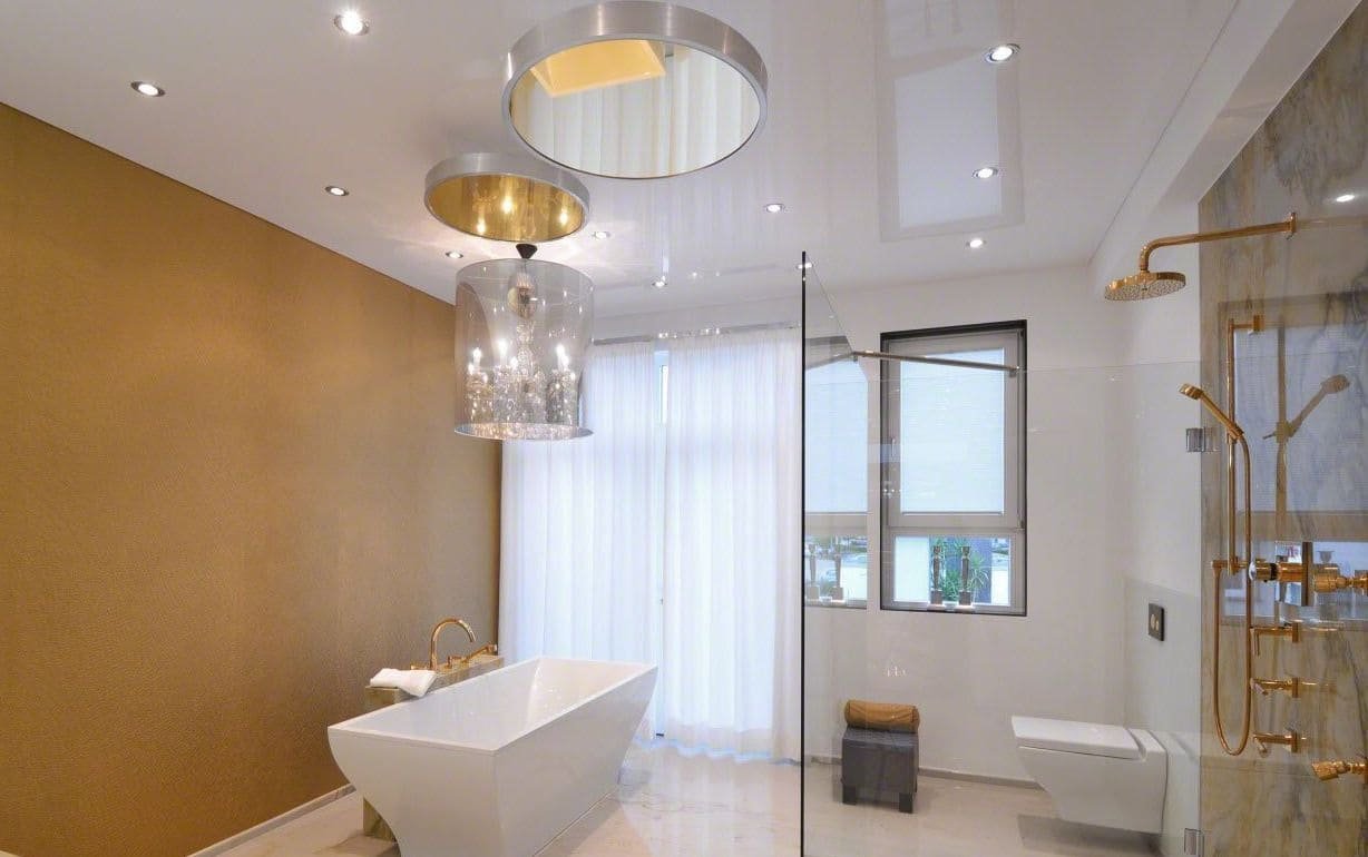 Глянцевый потолок в ванную