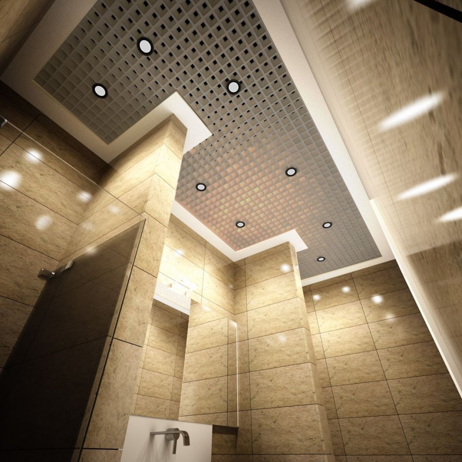 Дизайнерский потолок в туалете