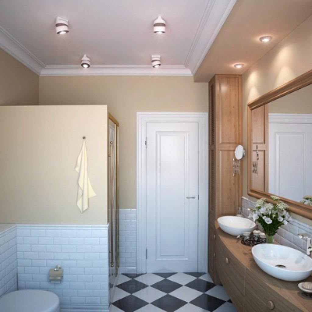 Потолочное освещение в маленькой ванной