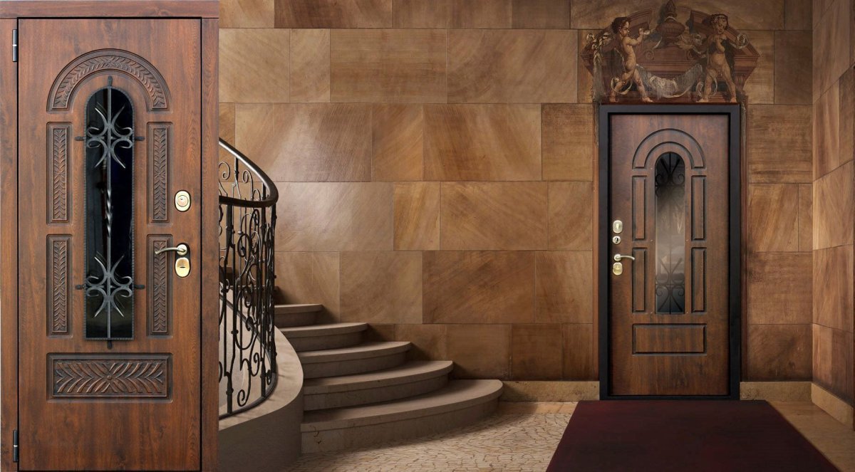 Входная дверь Виконт 1200 со стеклом и ковкой
