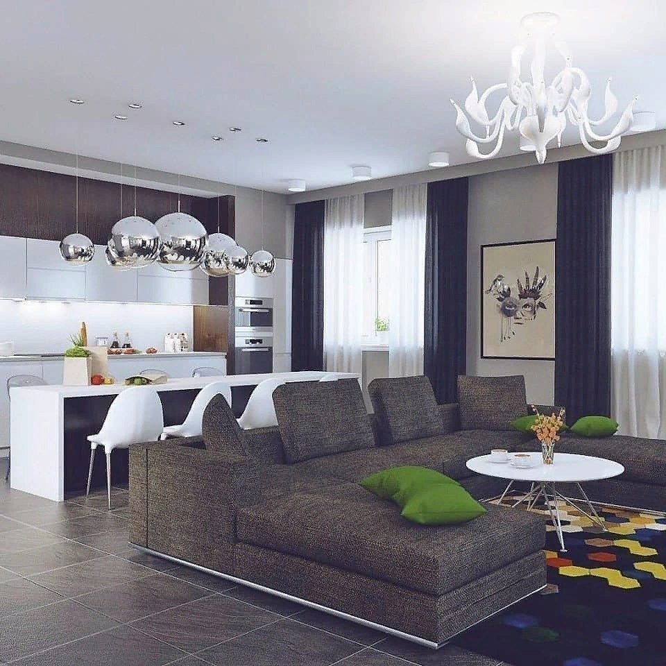 Зонирование кухни-гостиной 20 кв.м