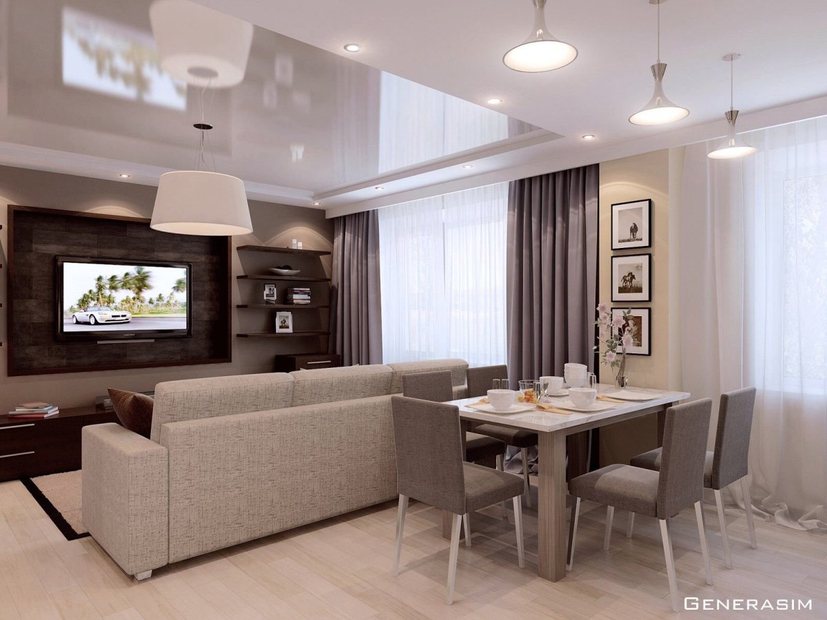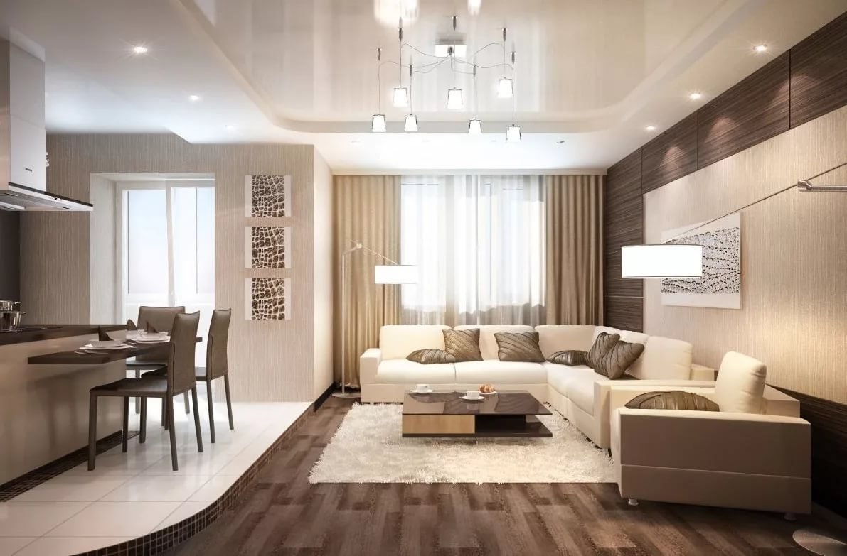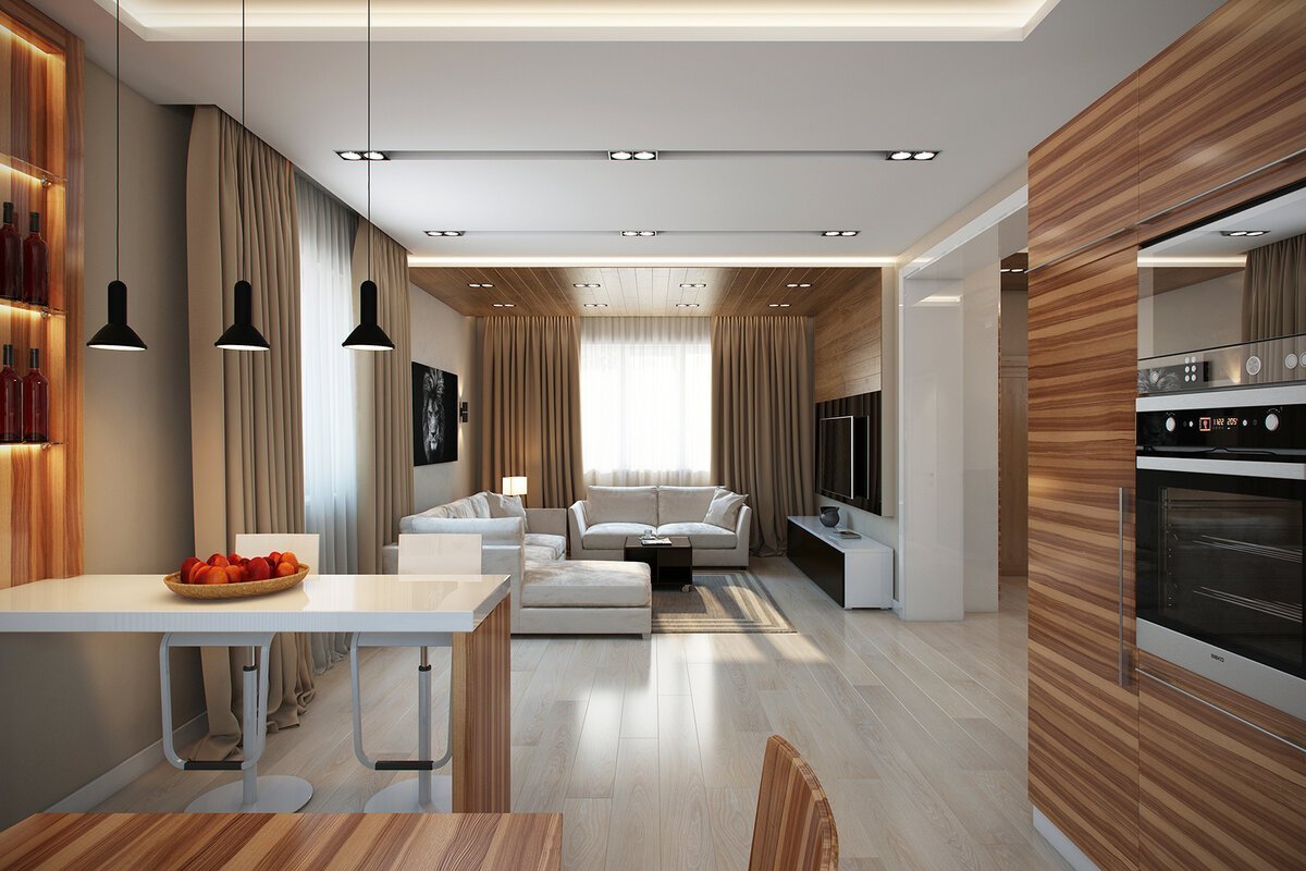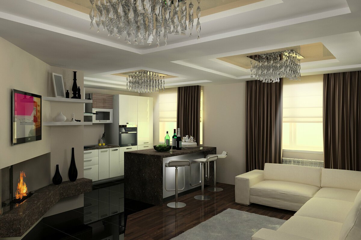 Интерьер кухни-гостинной 15м