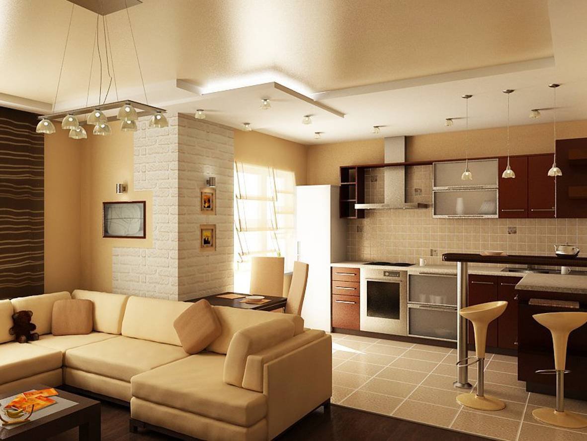 Дизайн кухни совмещенной с гостиной 20 кв.м