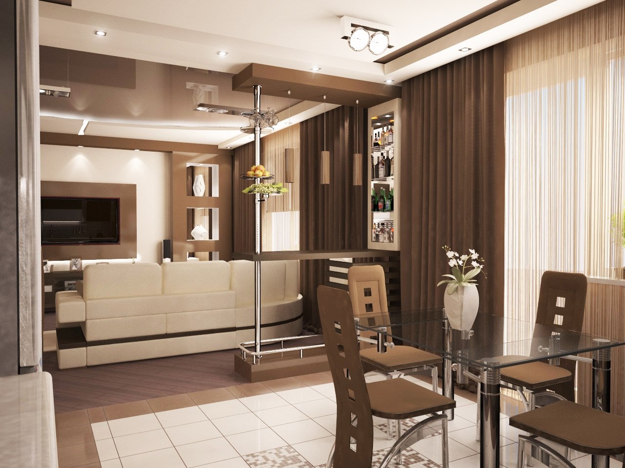 Зонирование кухни и гостиной барной стойкой