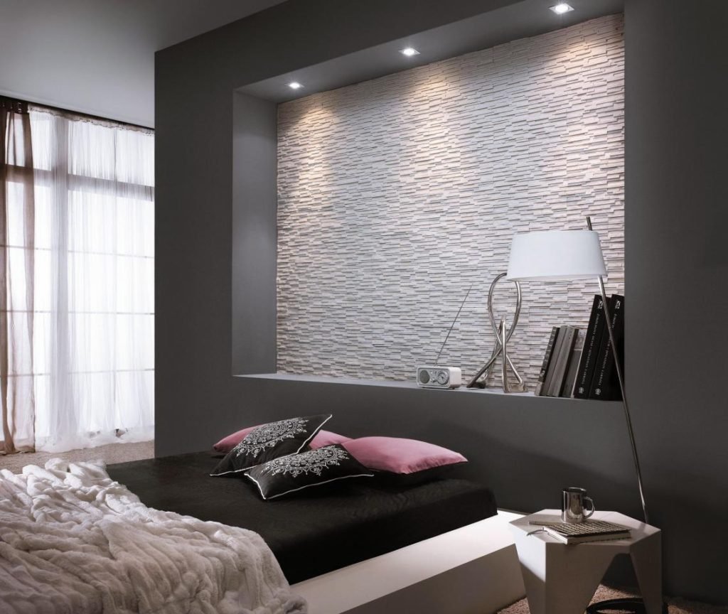 Искусственный камень в интерьере спальни