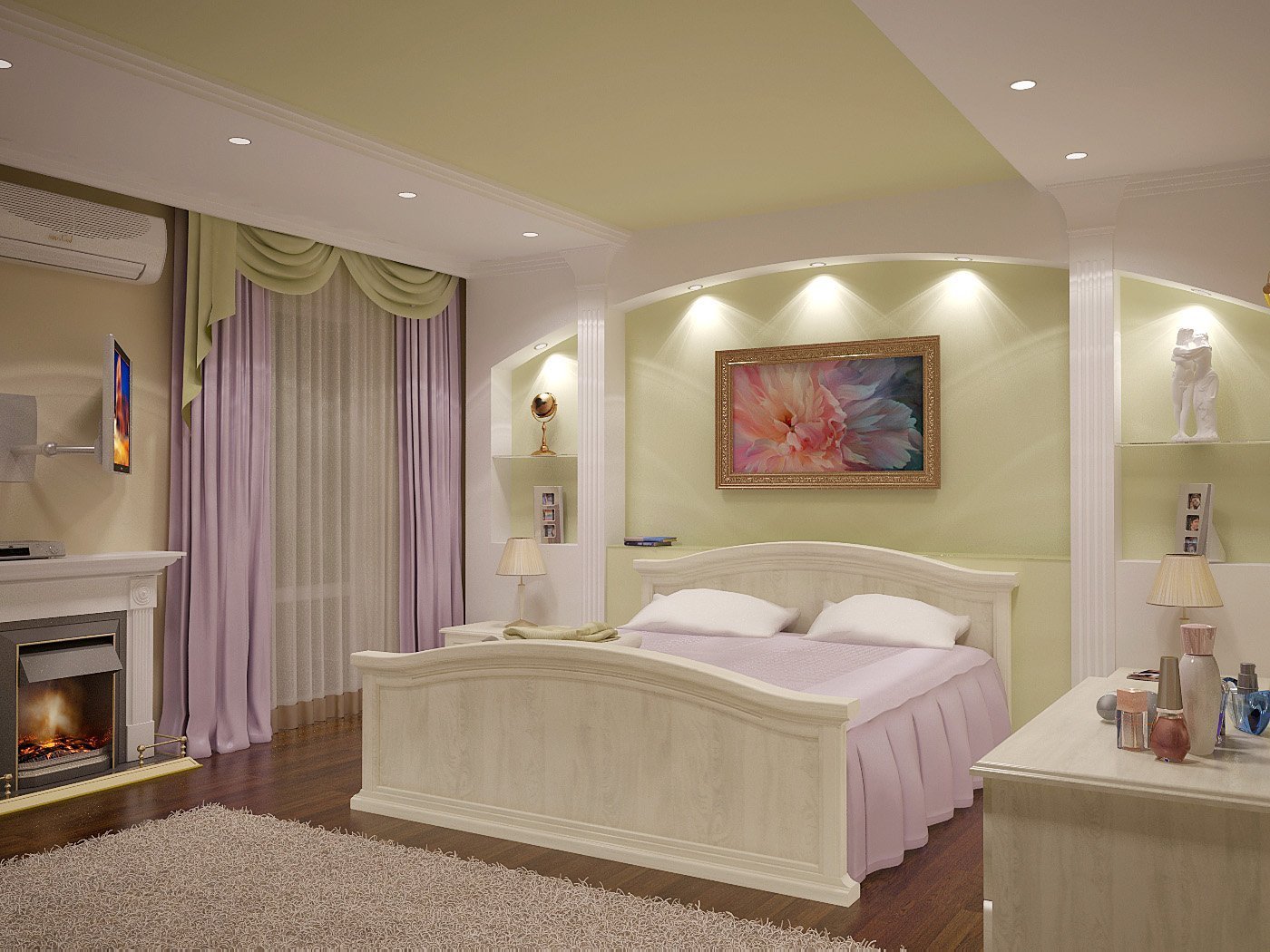 Гипсокартонные конструкции в спальне